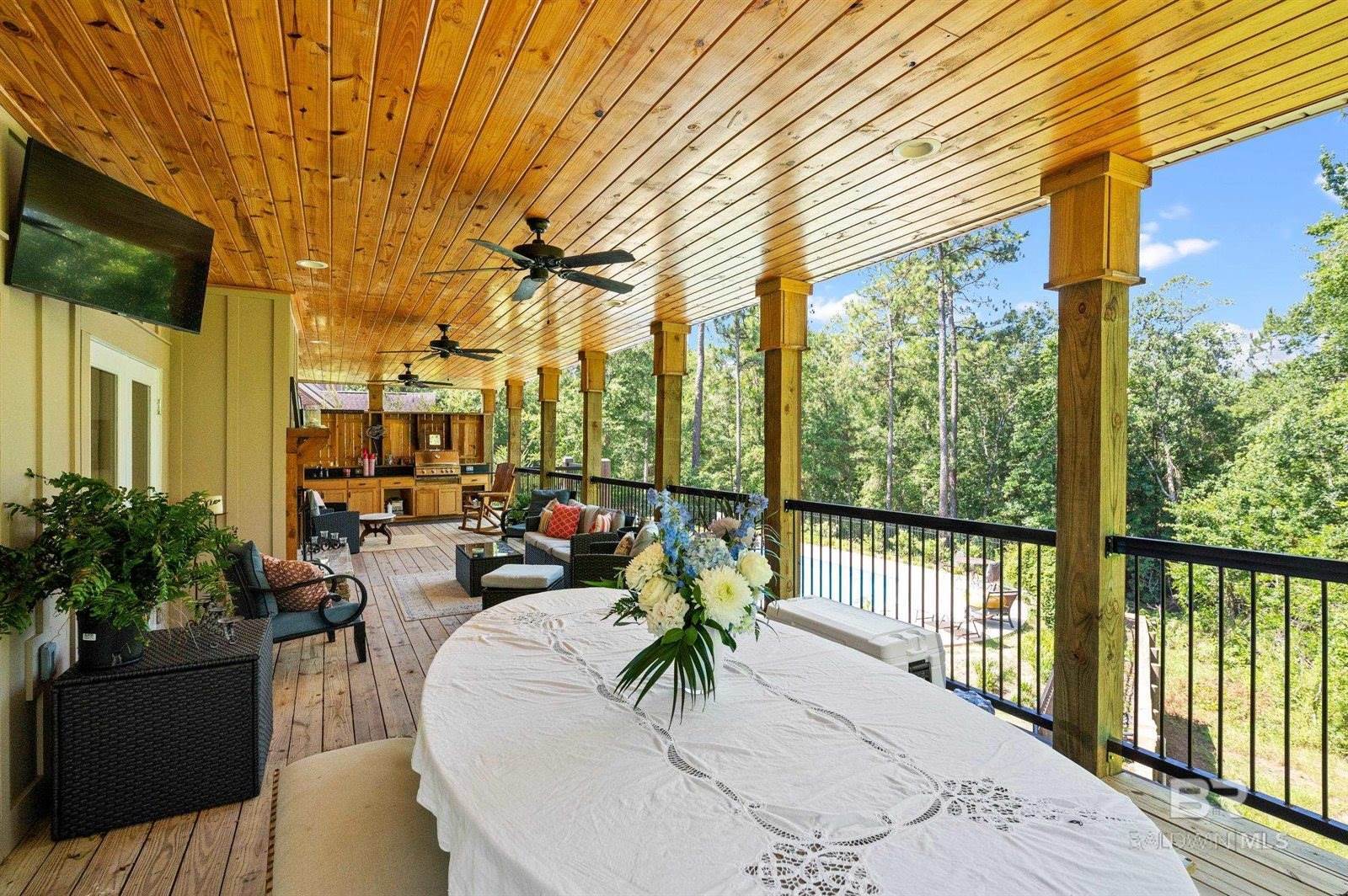 MOTIVATED SELLER! Custom build with a POOL ideal for hot summer days or cooling off after school. 4-bedroom, 4.5-bathroom with spacious bonus room. 2 bedrooms & 2.5 bathrooms ON MAIN LEVEL for ease of guests or Mother-in-Law suite, 2 bedrooms/2 bathrooms, and a BONUS ROOM upstairs. As you walk through the home, notice the beautiful wood details throughout- SOLID mahogany front doors, pine foyer and kitchen ceilings, along with HAND-CRAFTED cypress fireplace mantels & beams with wood from the GRAND HOTEL'S most recent renovation. The kitchen boasts stainless steel appliances featuring a GAS COOKTOP, POT FILLER, SEPARATE ICE MAKER, PROFESSIONAL FRIDGE and PREP SINK. The spacious laundry room features more storage, folding zone, and a drop zone between the kitchen and 3-CAR SIDE-LOADING GARAGE. Additional features include TANKLESS water heaters, solid wood interior doors, SURROUND SOUND in the living room, and lots of WALK-IN ATTIC STORAGE. Bonus room could be used as a game room, theater room or additional guest space. Snuggle up in front of the wood-burning FIREPLACES, choose from the one in the living room or the back porch. Spanning the width of the home, the 14' x 44' COVERED back porch is perfect for al fresco dining or relaxing while overlooking the picturesque SPARKLING POOL and WOODED, serene backyard. HOA protected land along the north and west property lines for additional privacy. Stained concrete main floor for easy cleaning, especially for pets! You've got to see this beauty to appreciate all the custom features. Make your appointment TODAY! Information deemed accurate, Buyer/Buyer Agent to verify all pertinent information. Buyer to verify all information during due diligence.