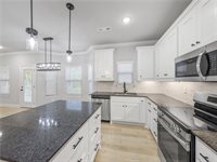 Counters Throughout. Kitchen Offers Pantry, UC Lighting, Tile Backsplash, Island/Bar Seating, Eat-in Dining. Primary Suite w/ Nice Walk-in Closet. Dual Vanity, Soaker Tub, Tile Shower In Primary Bath. 2 Secondary Beds + Full Hall Bath That Features A Dual