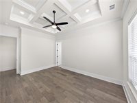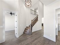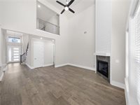 Doors, Custom Cabinets, Quartz Countertops, Wood Flooring In The Main Living Area, Wood Treads On Stairs, Detailed Trim Work, Coffered Ceiling In Primary, Upgraded Appliances, And So Much More! Living Area w/ Corner Fireplace + 22 Foot Ceilings. Kitchen Offers