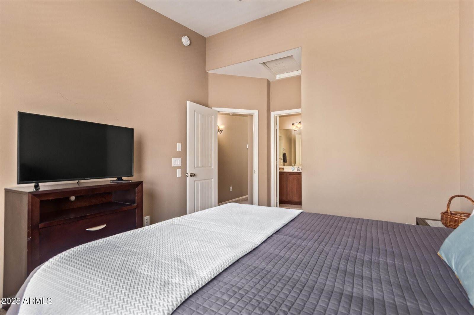 Look no more! This charming townhome in Via De Cielo Condominiums has two bedrooms, each with a private bathroom PLUS a powder room for guests! The interior boasts abundant natural light, a balcony, and an island kitchen--and the fridge, washer & dryer come
