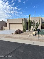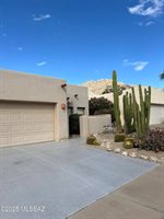 This charming and clean Oro Valley townhome is close to shopping, dining, entertainment and recreation. Soaring vaulted ceilings and clerestory windows with an open floor plan exemplify the true architectural style of well known architect, Rob Robinette. Large great room includes a welcoming fireplace and opens outside to the nice sized back yard with covered patio and a block wall for privacy. Master suite has a good sized walk in shower and walk in closet. Indoor laundry and 2-car garage. Community pool and picnic area at the end of the cul-de-sac.