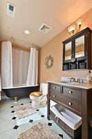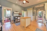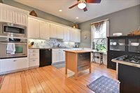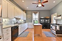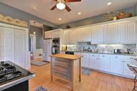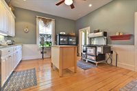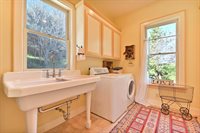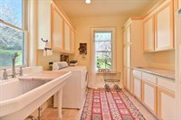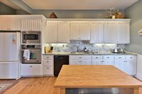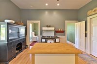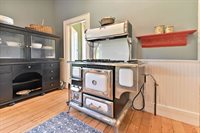 a bright and cheery atmosphere. There is also a well-appointed laundry room/butler's pantry with many cabinets, a vintage sink and 2nd fridge. The kitchen has quartz countertops, butcher block island, two ovens and a charming reproduction stove. Lots of cabinetry