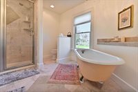 for all your kitchen storage needs, and the original wood flooring maintains the historic felling. The large dining room can accommodate a table that seats 12! The main bedroom has a walk-in closet and a smaller second closet and a luxurious bathroom that