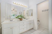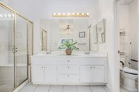 the primary bathroom boasts double sinks. Additional highlights include an indoor laundry room with a sink and upper cabinets, plus an attached two-car garage for security and convenience. When you walk outside enjoy a drought-tolerant landscape, a covered