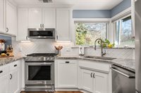 a dual fuel range. A charming dining nook offers picturesque views of Bidwell Park, perfect for enjoying your morning coffee while watching the wildlife among the trees. The primary suite is surprisingly spacious, with a beautifully tiled step-in shower with