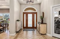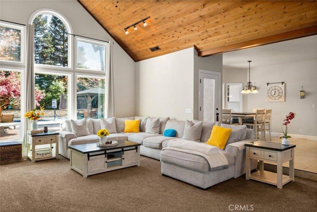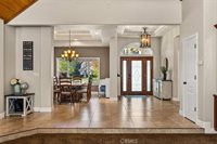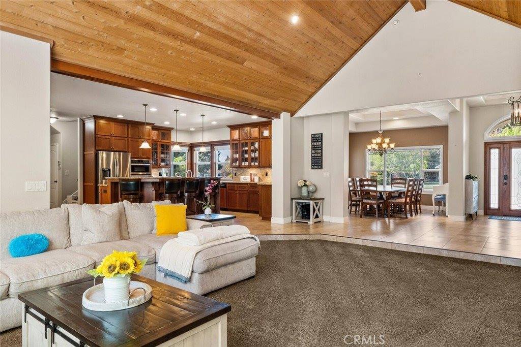 Step through the impressive entryway and discover elegant tile flooring, soaring ceilings, and an abundance of natural light pouring in through numerous windows. The open-concept design leads you into the expansive living room, complete with vaulted ceilings