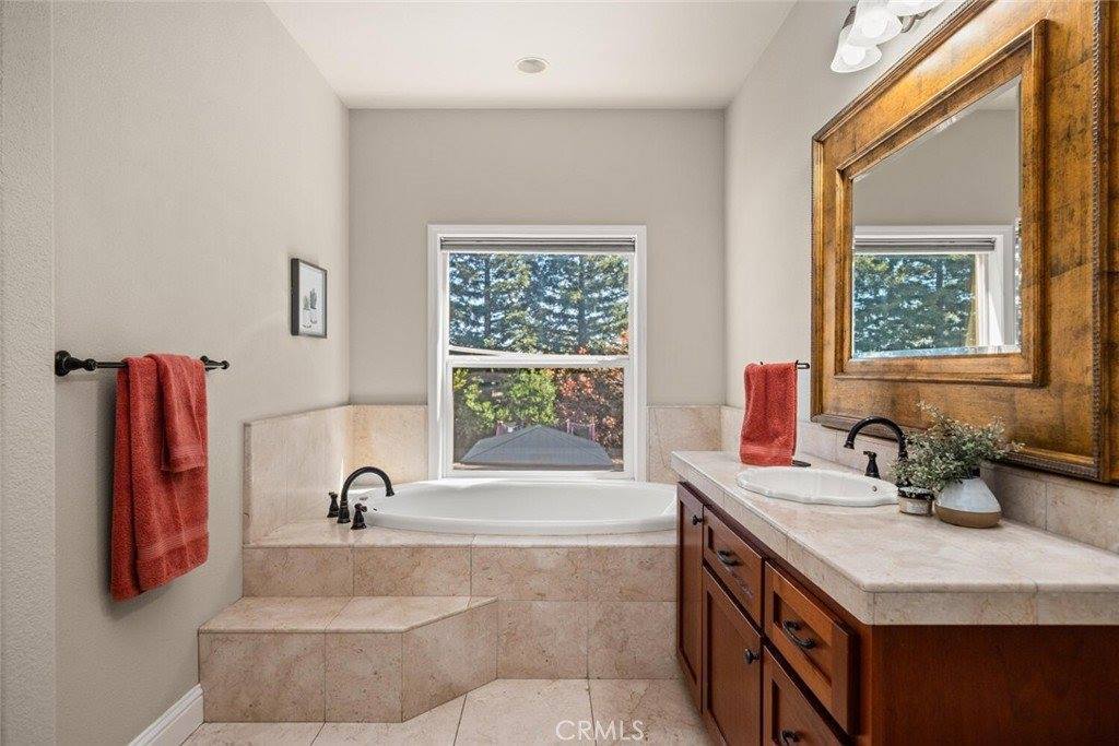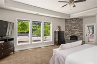The luxurious primary suite is a private retreat, featuring its own gas fireplace, tray ceilings, and a spa-inspired ensuite bath with dual vanities, a soaking tub, and an oversized walk-in shower. Additional highlights include a spacious upstairs loft ideal