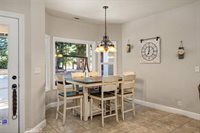 appliances, a large center island with a 5-burner gas cooktop, and a charming breakfast bar perfect for quick bites or casual conversation. The dining area, seamlessly connected to both the kitchen and living room, sets the stage for memorable entertaining.