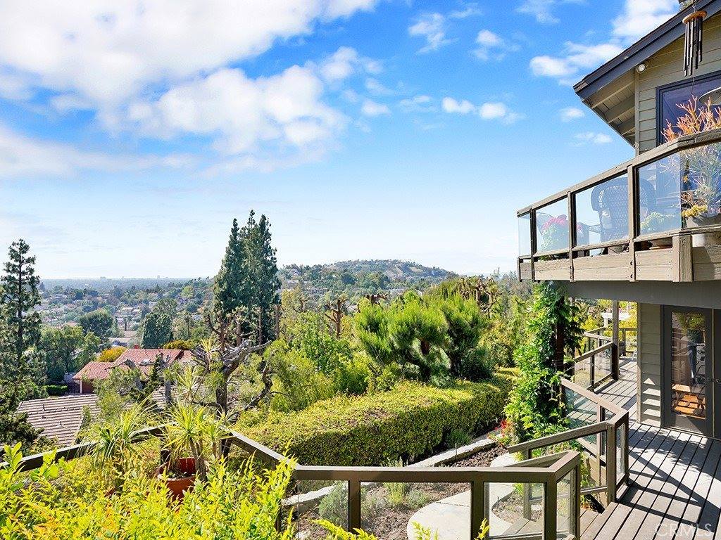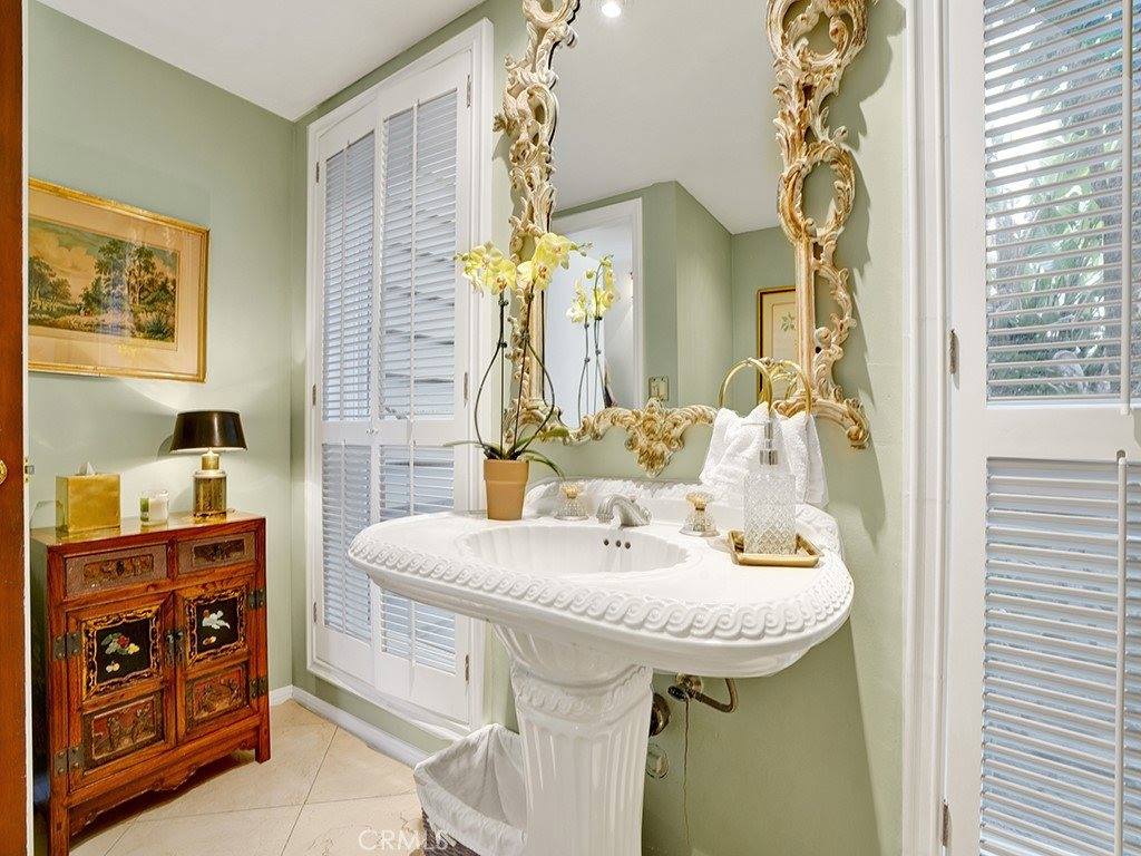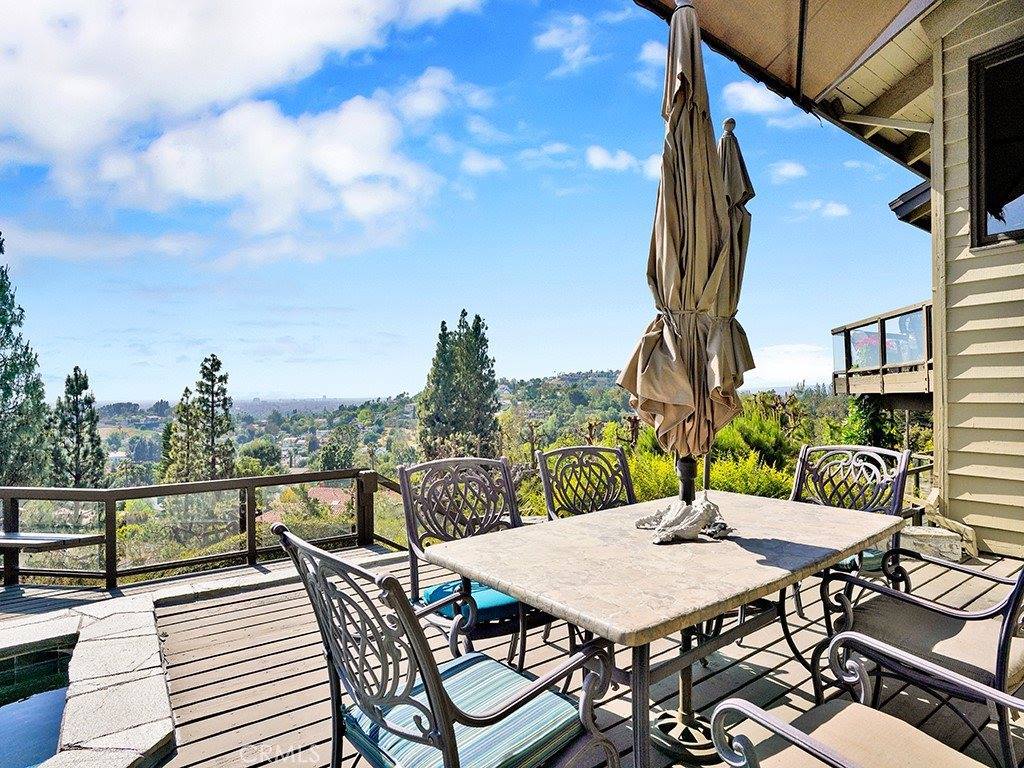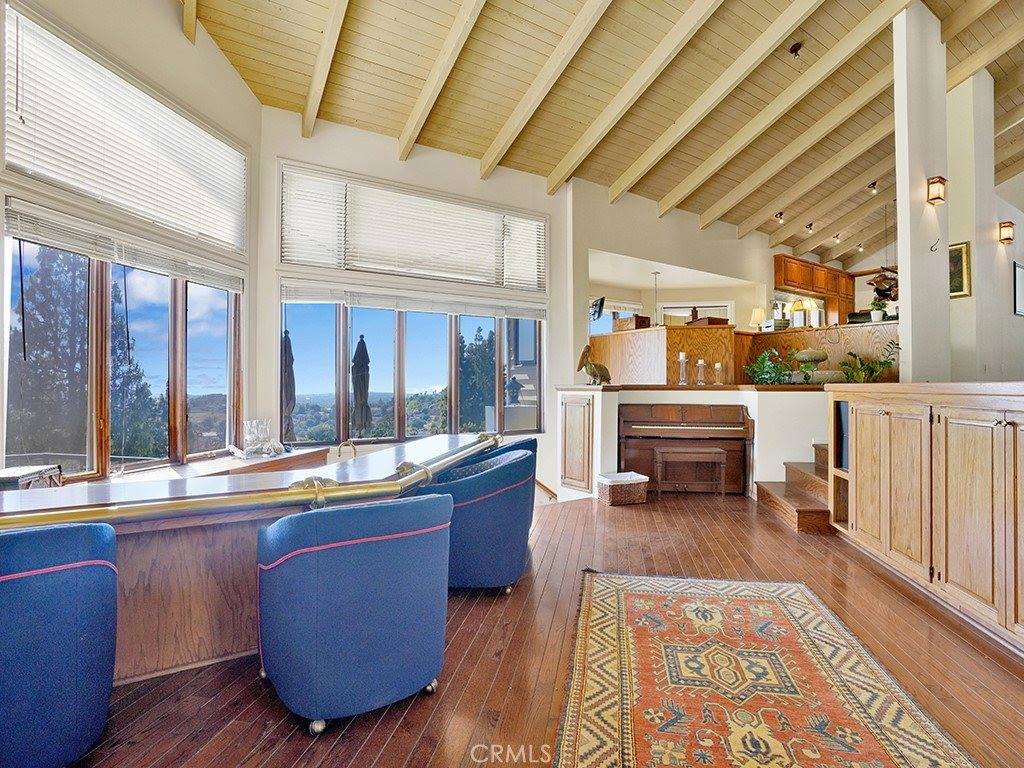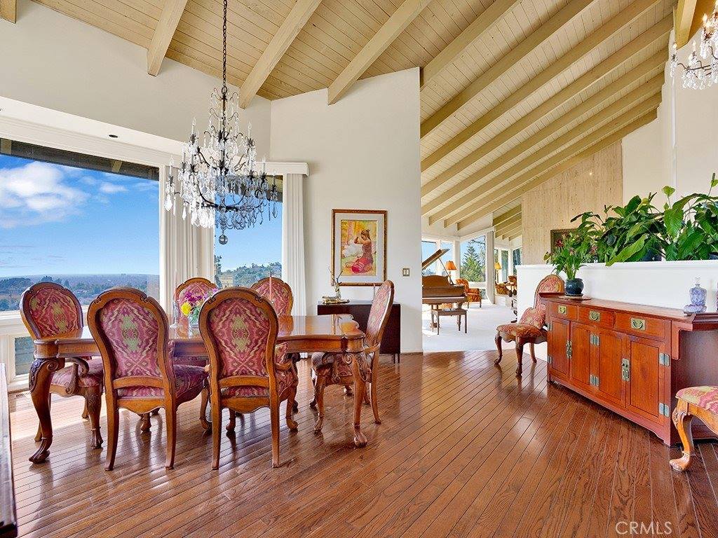 with an emphasis on entertainment, upon entry into the foyer with a large crystal chandelier, the home opens to a living room with fireplace and dramatic 180-degree views of Tustin, Irvine, Fullerton and the Pacific. The adjacent dining room with crystal chandelier,