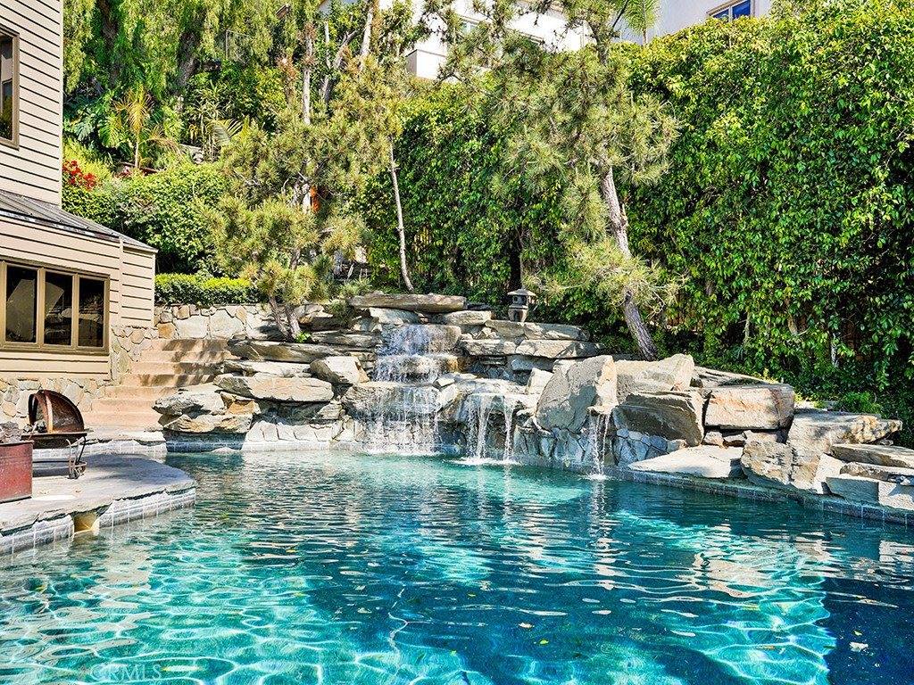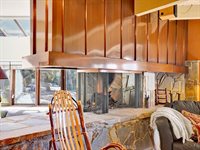 family room, hot rock sauna and bath, with access to the outdoor decks and a resort style natural rock waterfall, solar-heated pool, spa and built-in BBQ, all with dramatic views. Upstairs bedrooms feature a large master with fireplace, outdoor deck and master
