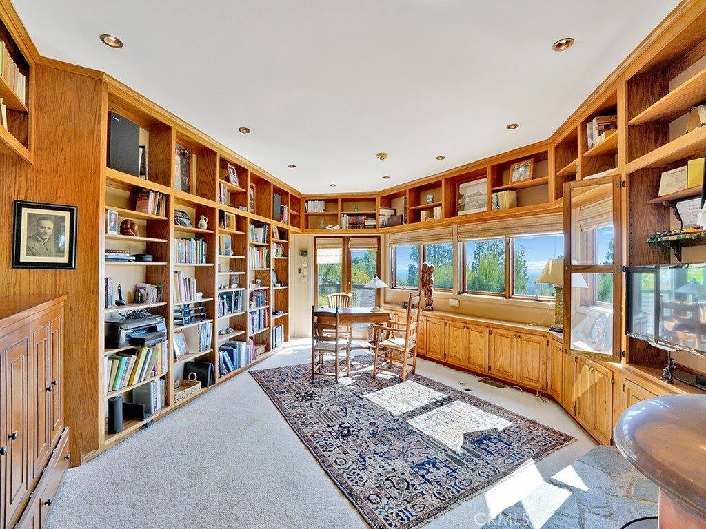 kitchen with breakfast nook and outdoor patios are intimate and accessible. A copper fireplace provides a warm environment to the family room including a reading nook and direct access to the large pool deck. A convertible office/library incorporating another