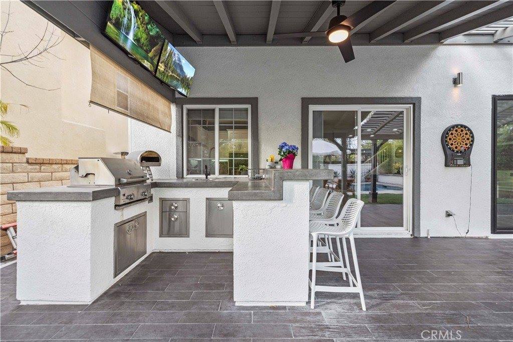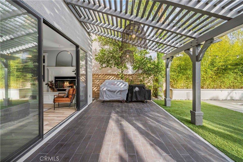 tile flooring, built-in BBQ area, lush privacy landscaping, and a retaining wall added in 2022. Additional upgrades include: owned solar (2022), a newer AC unit, tankless water heater, exterior paint (2021), hardwired security system, surround sound throughout