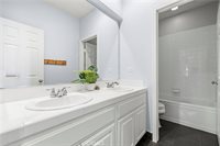 with a soaking tub and oversized shower. One of the secondary bedrooms includes a private balcony, and the laundry room has been conveniently relocated upstairs. The backyard is your personal resort—complete with a remodeled pool and spa, custom deck with