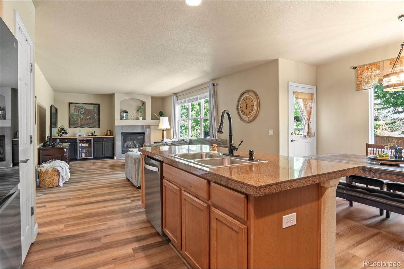 flex space ideal for a home office, nursery, workout area, or relaxation room. The updated kitchen boasts granite tile countertops, a generous coffee bar, and flows seamlessly into the cozy family room with a built-in bar-ideal for entertaining and everyday