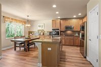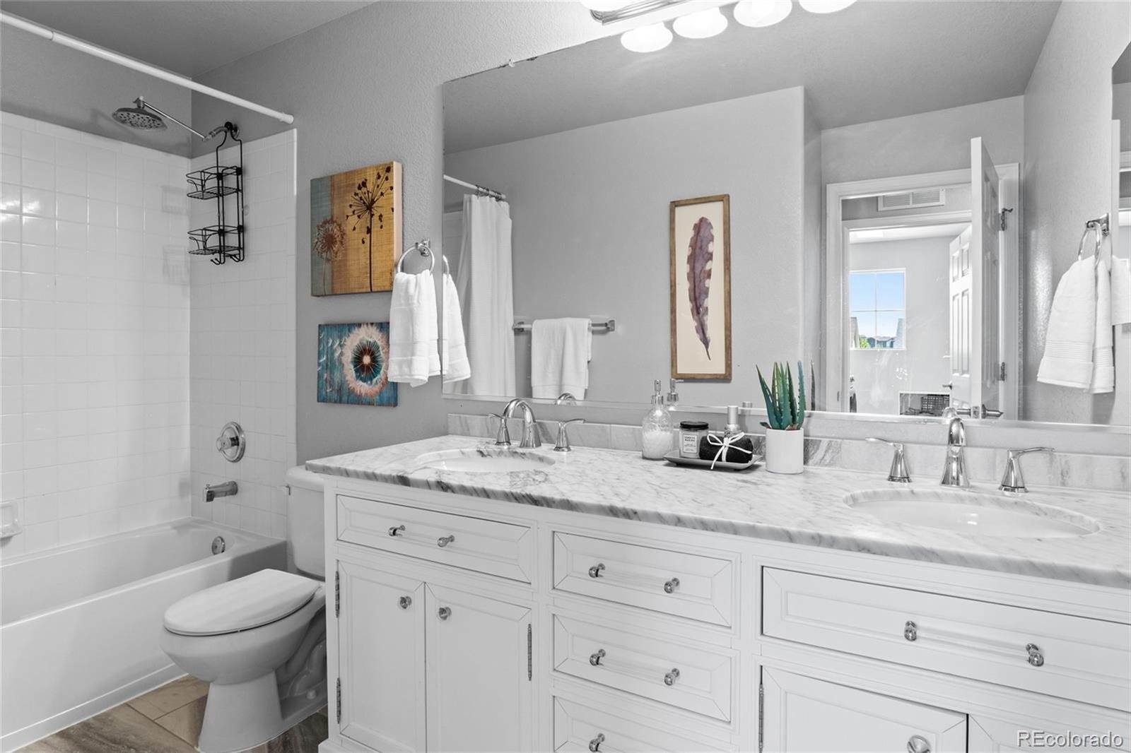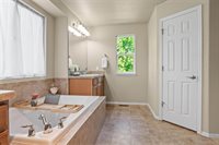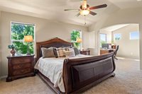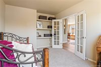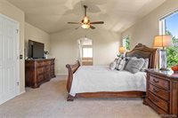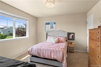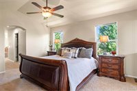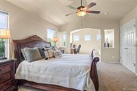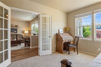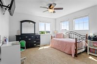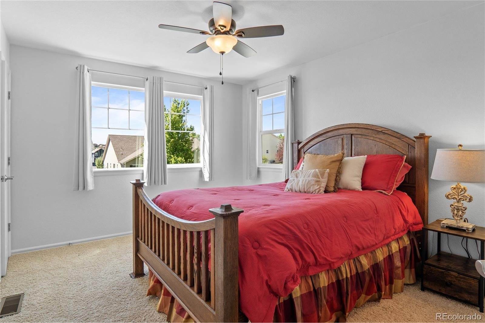 bedroom that can double as a home office or guest room. One of the upper-level bedrooms features a private en suite full bathroom, perfect for multigenerational living or visitors. The expansive primary suite is a true retreat, complete with a large attached