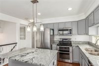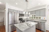 seamlessly flows from the living room to the kitchen and dining areas—perfect for both entertaining and everyday living. The chef-inspired kitchen features stainless steel appliances, granite countertops, ample cabinetry, and a large island—perfect for meal