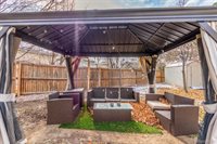 after a busy day. The fully fenced back yard has plenty of space for activities. The gazebo makes for the perfect spot to hang a projector and screen and enjoy movies outdoors all summer long. There spacious 2-car garage provides both convenience and additional