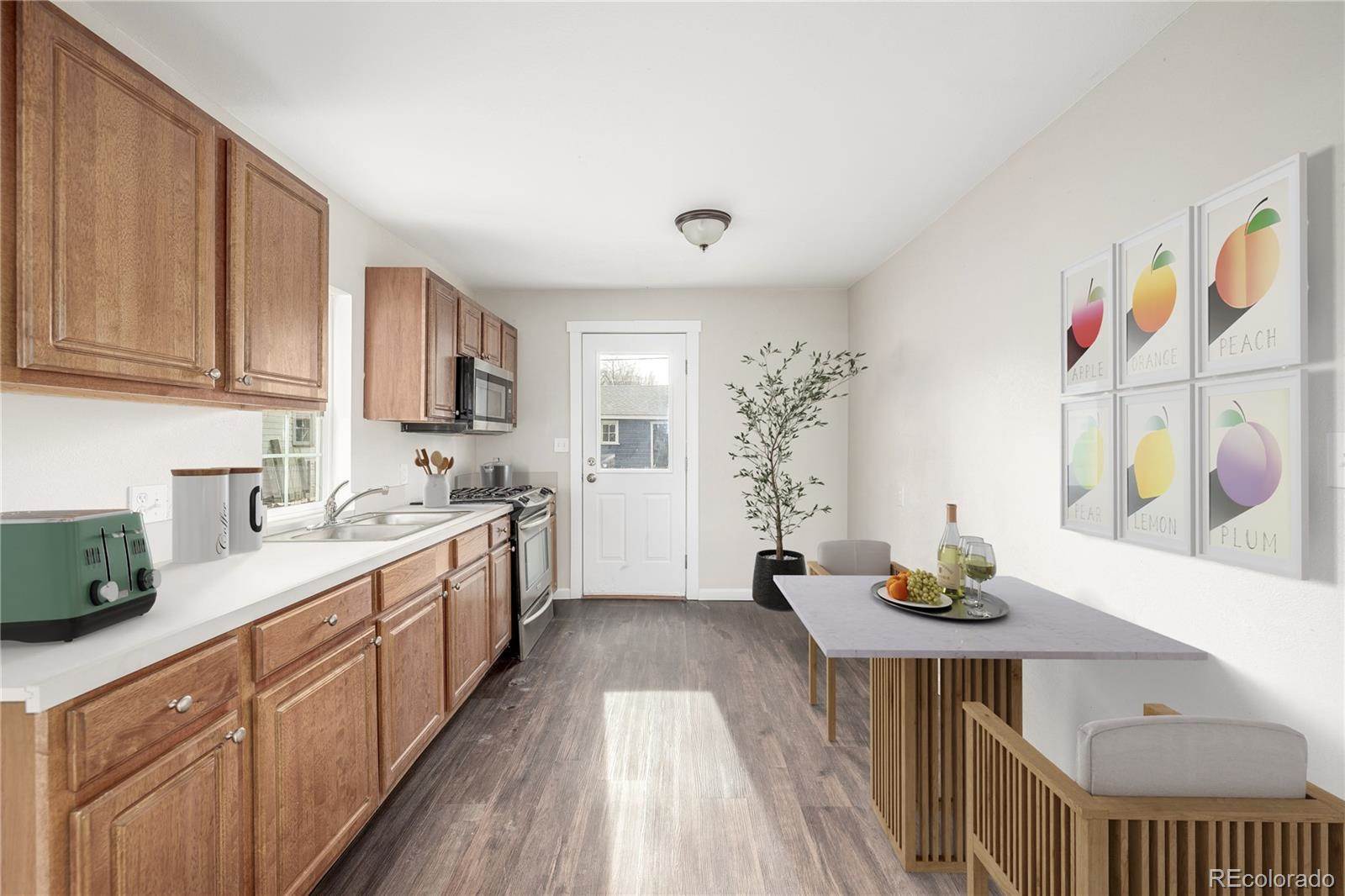 Explore inside to find a spacious great room, perfect for entertaining or unwinding after a long day. Updated kitchen is equipped with stainless steel appliances, ample counter space, and warm wood cabinetry, making meal preparation a delight. The well-sized