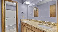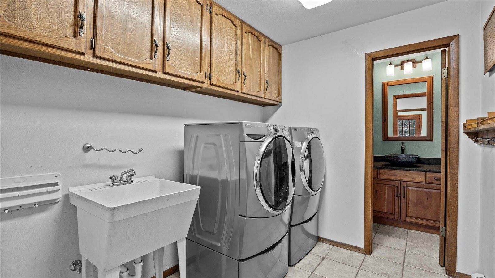 to a covered patio. You'll also find a spacious kitchen with a cozy eating area, as well as the primary bedroom and laundry room conveniently located on this floor. Upstairs, there are four large bedrooms and a guest bathroom. If you need extra space, the