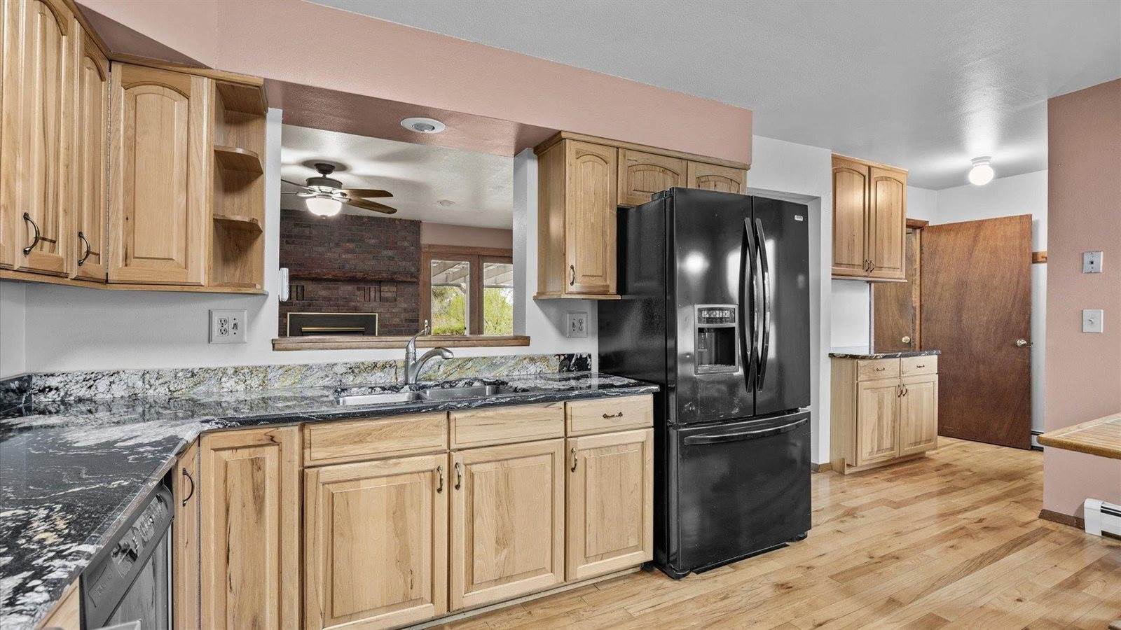 This beautiful home in Loma Rio Subdivision is nestled in a picturesque, park-like setting and is ready for its new owners! The main level features a formal dining room and two living rooms, one of which boasts a wall of windows and French doors that open