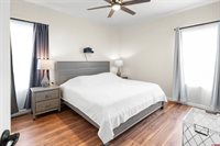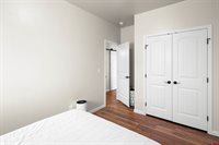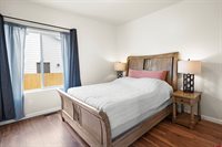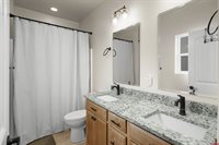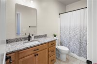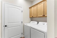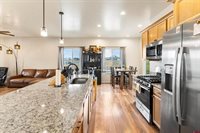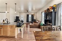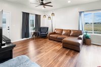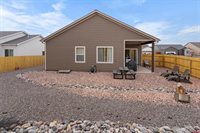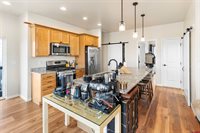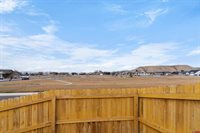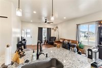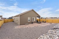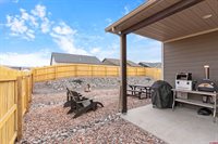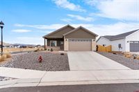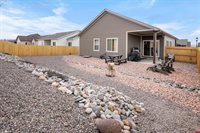 This charming, newer home, built in 2022, is lightly lived in and perfectly positioned on a corner lot across from subdivision open space. The inviting living room features a ceiling fan and seamlessly flows into the dining area and kitchen, making it an ideal space for entertaining. Large windows fill the home with natural light with views of the open area across the street. The spacious kitchen boasts an expansive island with room for multiple barstools, providing ample prep space, along with a generous pantry behind a stylish barn door. Beautifully crafted maple-stained cabinets with crown molding, soft-close doors and drawers, and granite countertops elevate both the kitchen and bathrooms. Appliances—including a gas range/oven, refrigerator, dishwasher, microwave, washer, and dryer—are all included for added convenience. The master bedroom offers a ceiling fan and two closets, while the en-suite bath features a dual-sink vanity and an easy step-in shower. Additional storage is available in the laundry room with extra cabinetry. The two-car attached garage also has a keybad entry. Designed for low-maintenance living, both the front and backyard are xeriscaped, with the backyard fully fenced for privacy. Be sure to take in the stunning San Juan views from the backyard looking south. Move-in ready and waiting for you—don’t miss the opportunity to make this beautiful home yours!