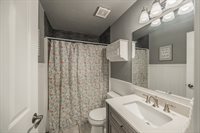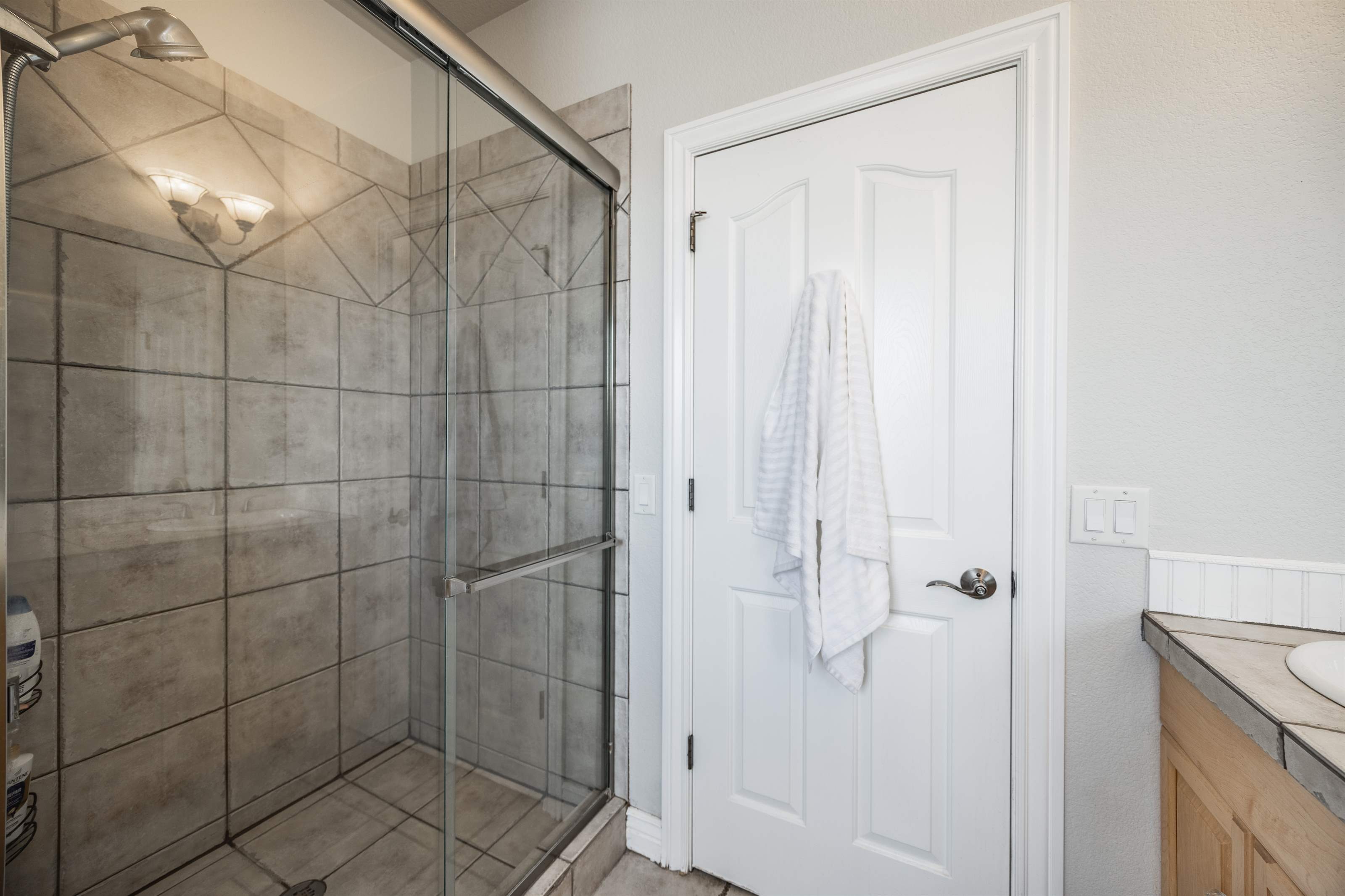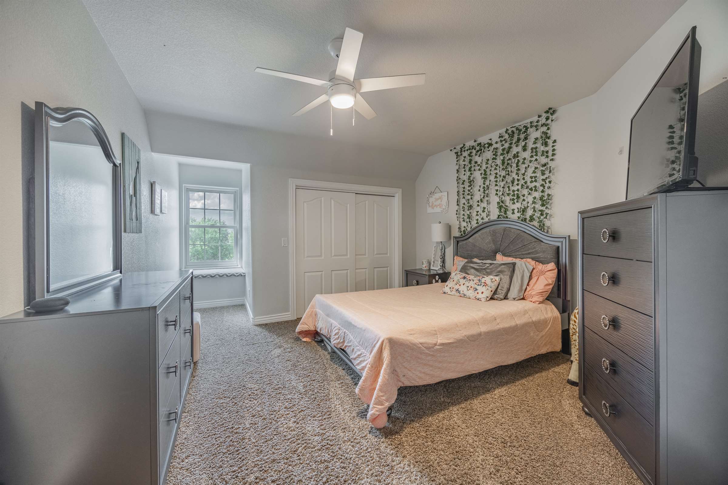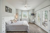 On the opposite side of the home, a second bedroom is adjacent to a full hall bath with convenient access to the back patio—perfect for guests or entertaining.