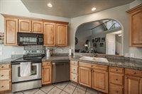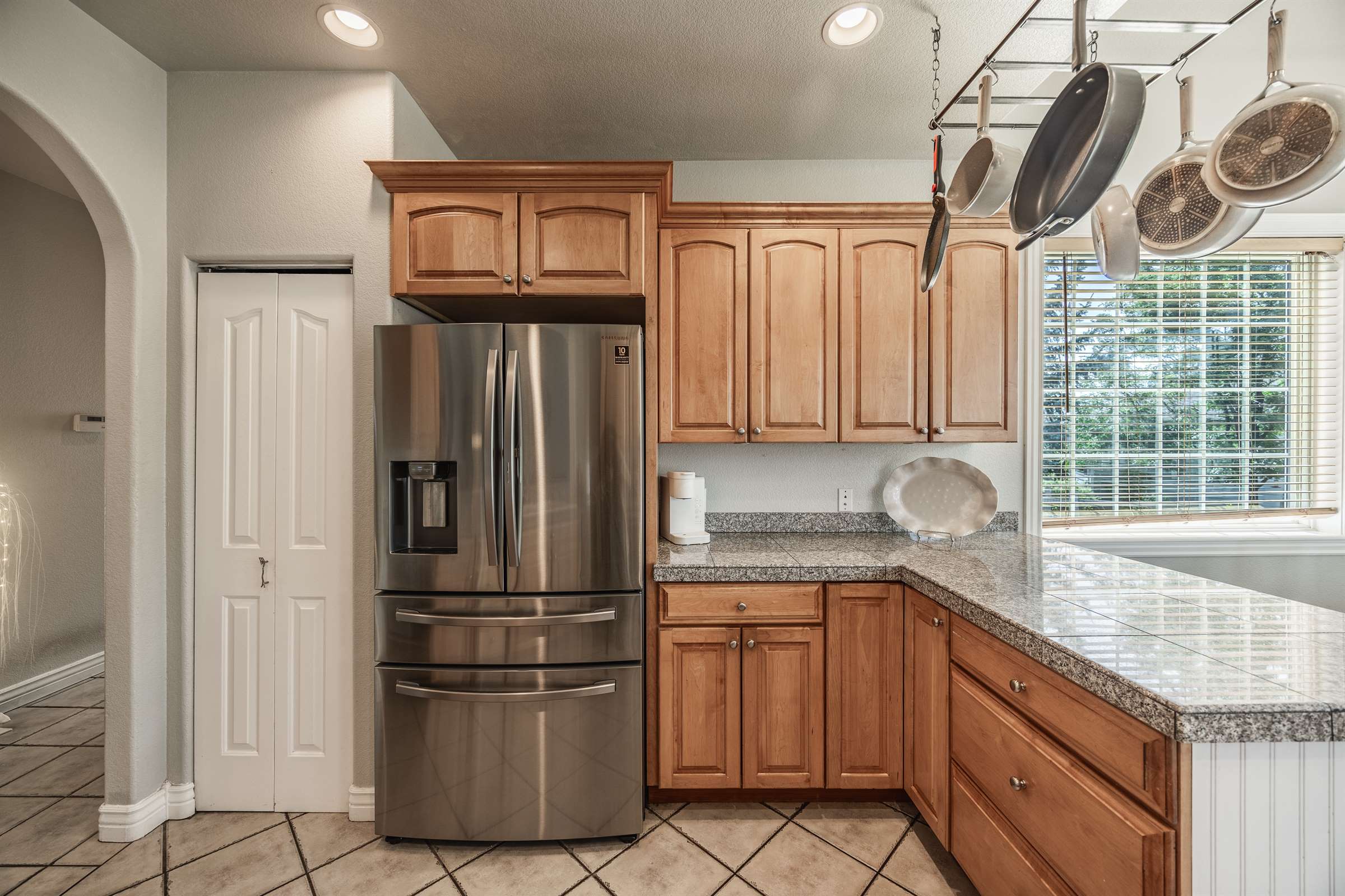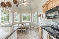 Step through the bright entryway into an open and airy layout featuring vaulted ceilings, abundant natural light, and seamless flow between the living, dining, and kitchen areas. The kitchen is both stylish and functional, offering bar seating, a cozy breakfast nook, generous cabinetry, and ample counter space—ideal for both everyday living and entertaining.