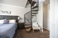 To the right, discover a flexible primary suite with a charming spiral staircase leading to a flex space—perfect for a home office, reading nook, or creative retreat. The primary bath and walk-in closet complete this serene haven in the desirable split floor plan.