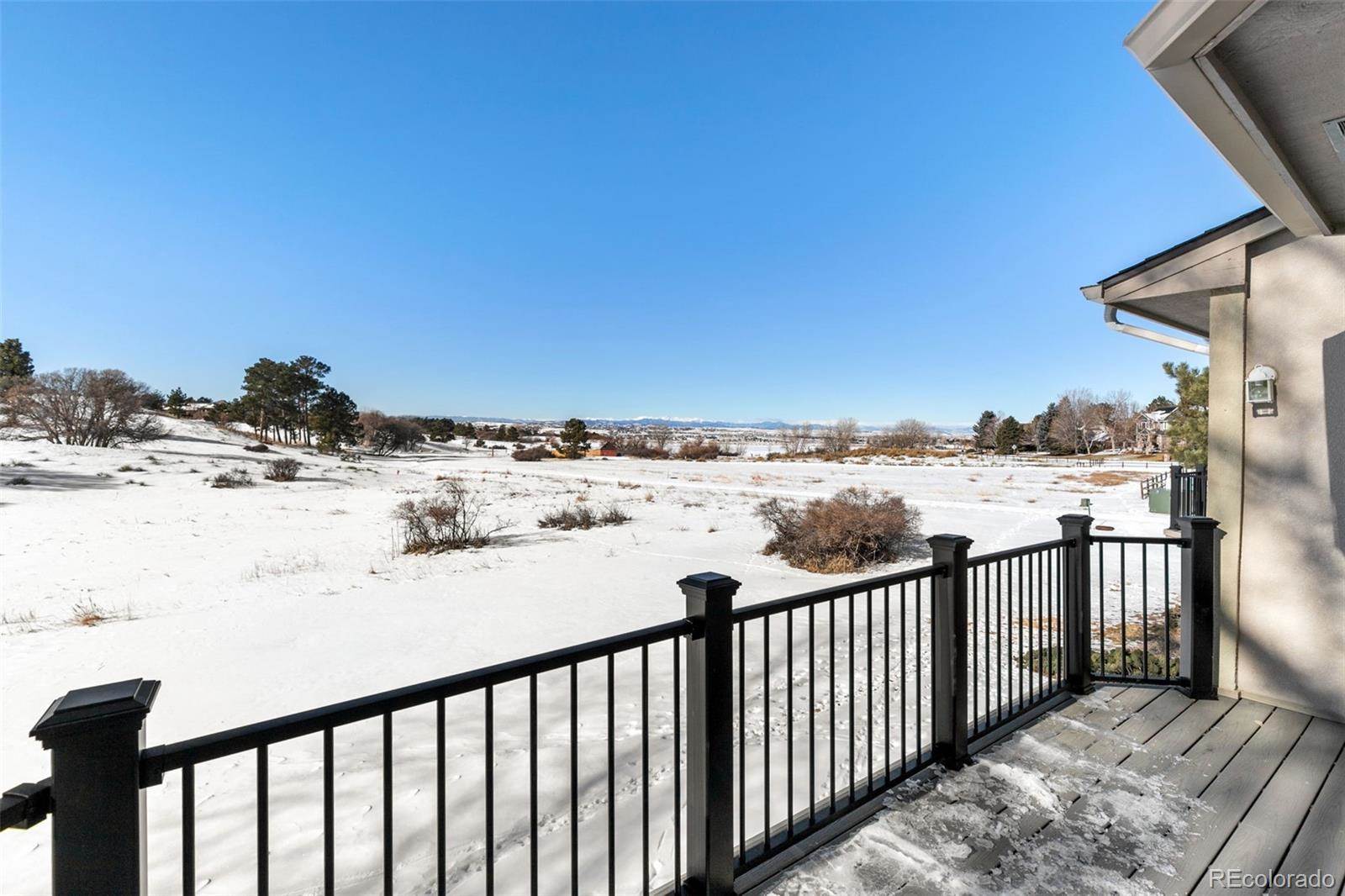Discover your Colorado dream home in the highly sought-after Pinery community of Parker! This stunning 4-bedroom, 4-bathroom ranch-style home sits on a desirable corner lakeside lot! This home offers unobstructed panoramic mountain views and direct access