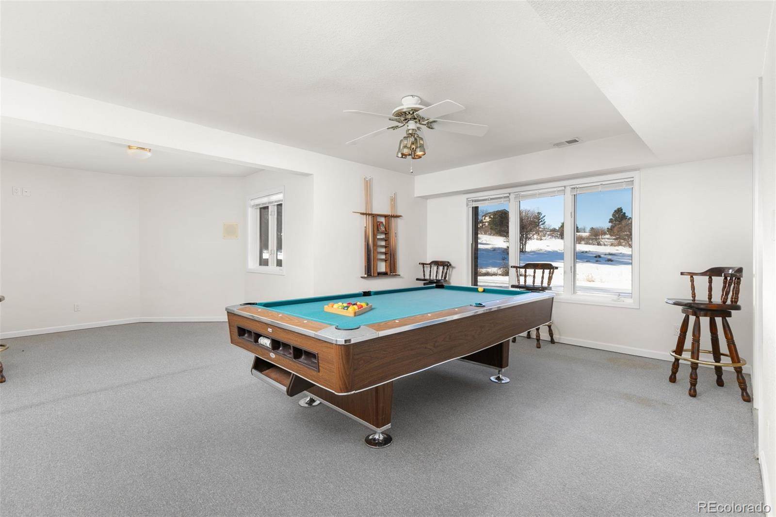fully finished walkout basement includes a spacious rec room, complete with a pool table, making it perfect for entertaining. The oversized 3-car garage includes a workspace and workbench, ideal for hobbyists or additional storage. Retreat to the large master