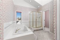 to scenic trails around Bingham Lake. Just steps from Lakeshore Park and minutes from the Pinery Country Club, this home offers the perfect balance of natural beauty and community amenities. Inside, the open floorplan boasts vaulted ceilings, large windows,