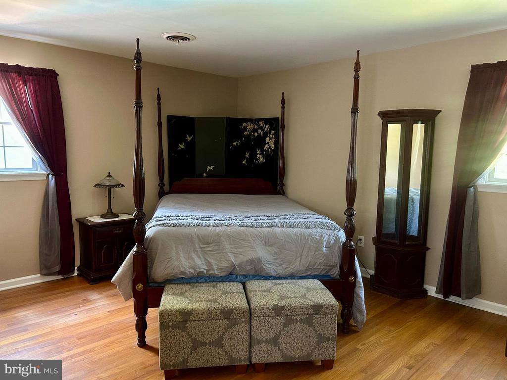 the first floor and allows plenty of space for larger furniture sets. Walk in closet and personal bathroom with jetted tub will add to the desire for this home as well as private access to the pool from your bathroom. Upstairs highlights hardwood floors in