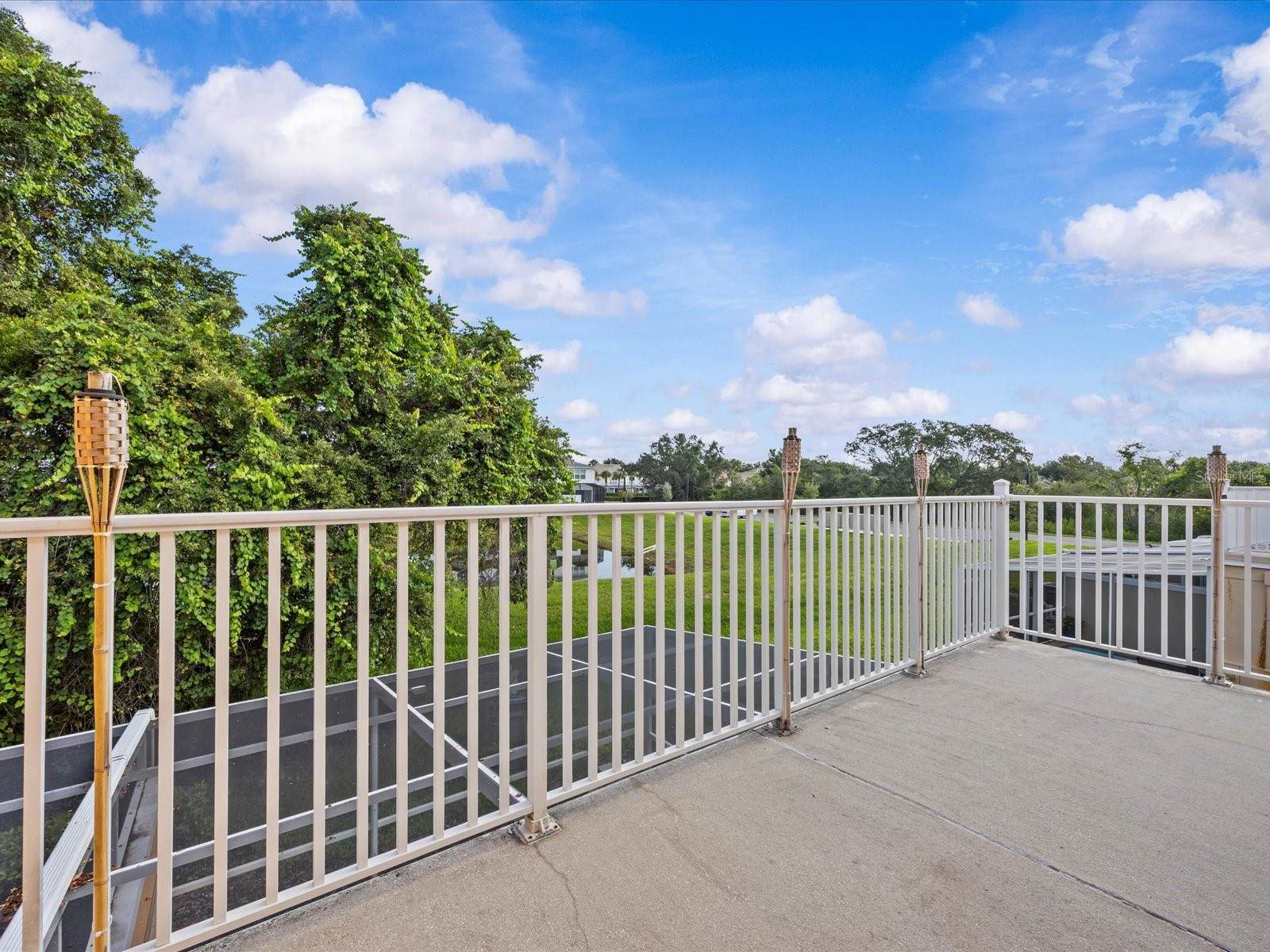 laundry area, plus a generous primary suite complete with a private balcony offering tranquil pond and pool views. A third upstairs bedroom also features its own ensuite bathroom, providing added privacy. Whether you're looking for a primary residence, vacation