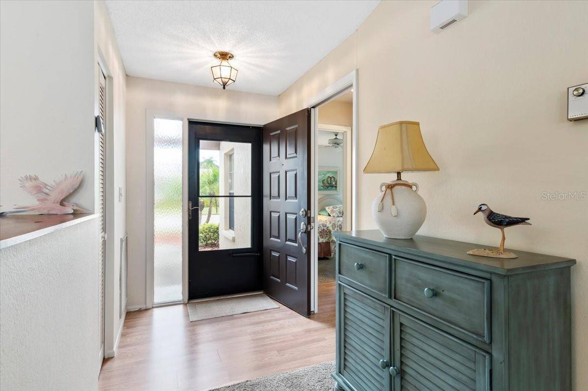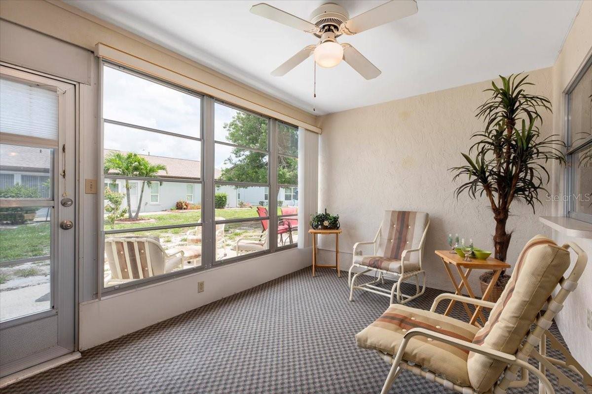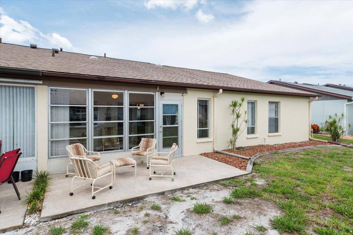 Welcome to a bright and beautifully maintained villa in the highly sought-after active 55+ community of Foxwood! This charming 2-bedroom, 2-bathroom home is the perfect blend of comfort, style, and peace of mind, with recent updates that include a brand new roof (2024), fresh exterior paint (2025), and a 2021 HVAC system to keep you cool year-round. Step inside and you'll immediately appreciate the vaulted ceilings and abundant natural light, creating an open and airy feel throughout the main living areas. A versatile Florida room offers the ideal space for an office, reading nook, or hobby area, while the private back patio provides a wonderful spot for morning coffee, outdoor dining, or entertaining guests under the Florida sun. The spacious 2-car garage allows plenty of room for your vehicle, storage, and even a golf cart — perfect for getting around this amenity-rich, pet-friendly community. Foxwood residents enjoy a vibrant, low-maintenance lifestyle with access to a clubhouse, heated pool and spa, tennis, pickleball and shuffleboard courts, walking trails, and organized activities that foster connection and fun. Whether you're relaxing at home, exploring the beautifully landscaped community, or taking advantage of the prime location just minutes from Wellen Park, Gulf beaches, and historic Dearborn Street in Old Englewood Village — known for its quaint shops, art galleries, and excellent restaurants — you'll love the convenience and community spirit that Foxwood offers. If you're looking for a move-in ready home with updated features in a welcoming 55+ neighborhood, this villa is your perfect Florida retreat. Come discover why life is better in Foxwood!