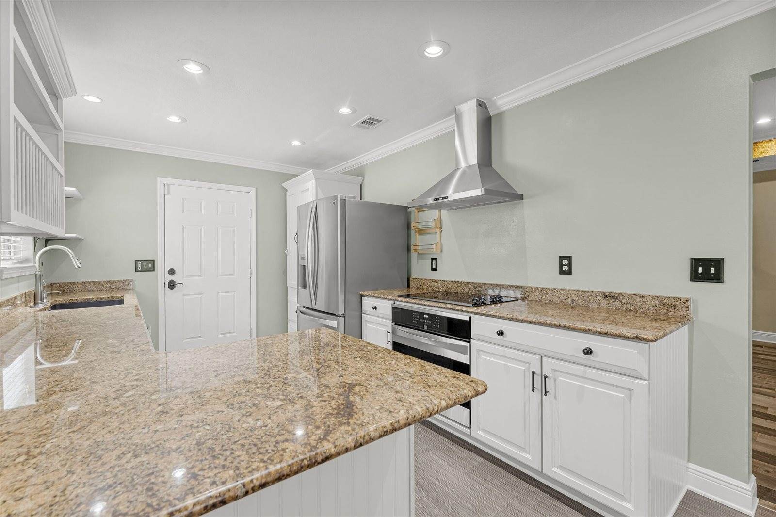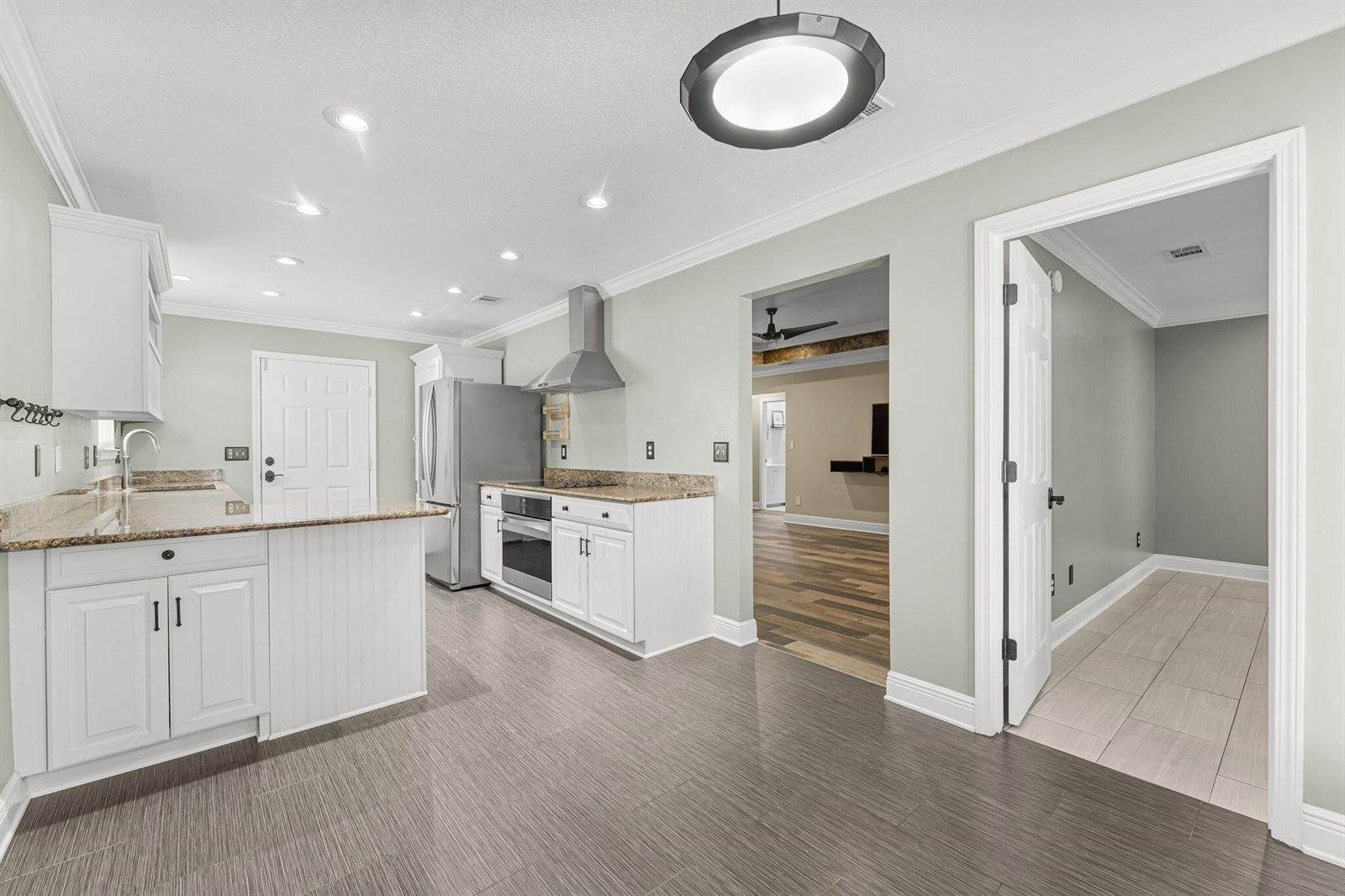 Beautiful 3 bedroom, 2 bath home with modern upgrades centrally located for an easy commute to Eglin AFB or Hurlburt Field. This well-loved and beautifully updated home offers comfort, style, and peace of mind with a new roof (2021), new HVAC (2023), and new hot water heater (2023).The modernized kitchen is a standout, featuring custom cabinetry, granite countertops, a stone sink, and matching stainless steel appliances--perfect for any home chef. The home also includes recessed lighting, upgraded light fixtures and door hardware, and designer tile flooring and trim throughout, adding a stylish touch.