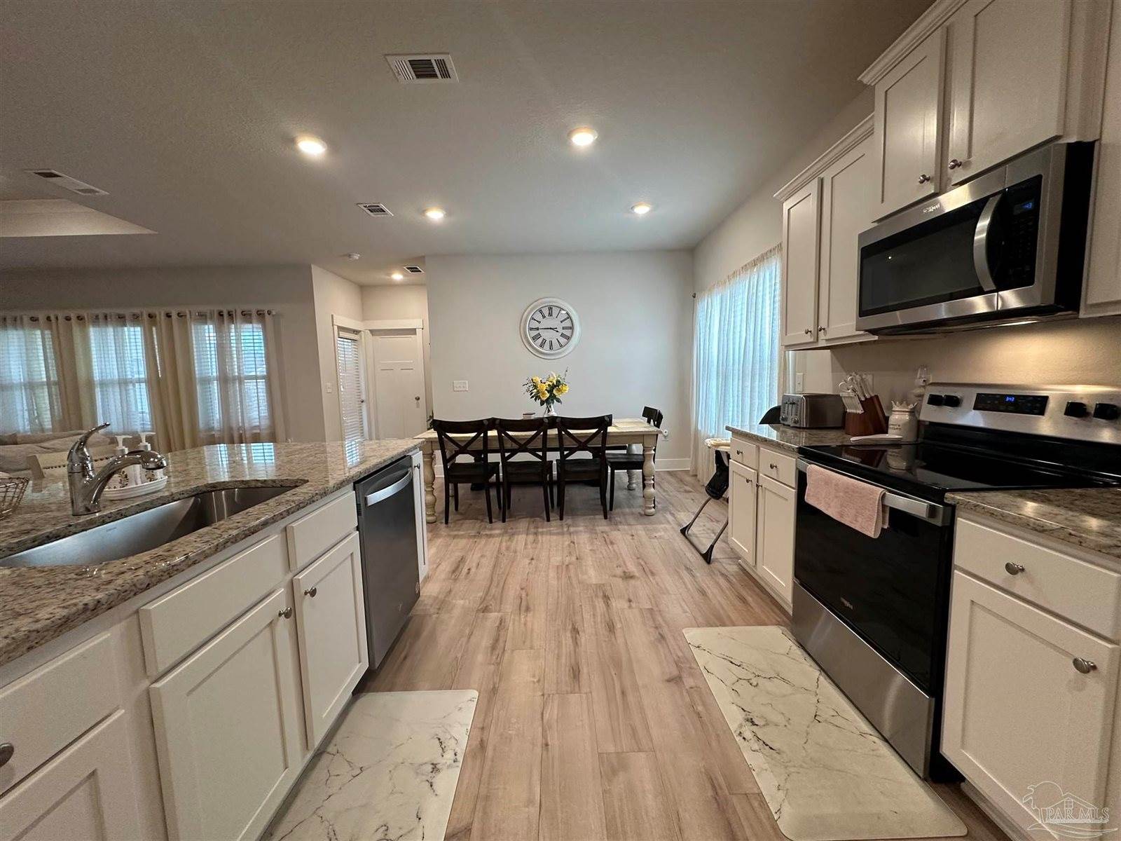 Welcome to Forest Bay Estate, Florida! This beautiful 4 Bed 3 full Bath 3 Car garage house is located in the highly desirable area of Gulf Breeze. Kitchen is truly the heart of the house - Stunning granite counter tops, all stainless-steel appliances, smooth top range, quiet dishwasher, large island bar and a corner pantry. Master Bedroom has a large walk-in closet and an adjoining bath that has a double granite vanity, garden tub and a separate shower. Lots of natural light! Relax at your covered patio, let your kids or pets roam free as your backyard is fully fenced. There is a community pool with picnic area for your enjoyment. While Forest Bay Estates is in a quiet, secluded, natural setting it also has nearby shopping centers, restaurants and boutiques. The pristine white sandy beaches of Pensacola and Navarre are just minutes away. Outstanding schools and friendly neighbors make this house a perfect match for a family or investment property. House is meticulously maintained as it is currently a successful Airbnb rental. Can be purchased furnished.