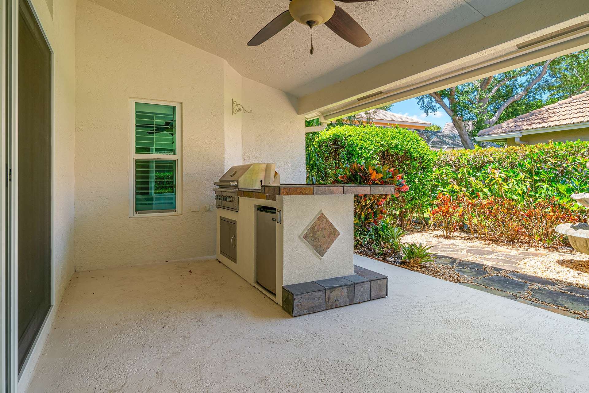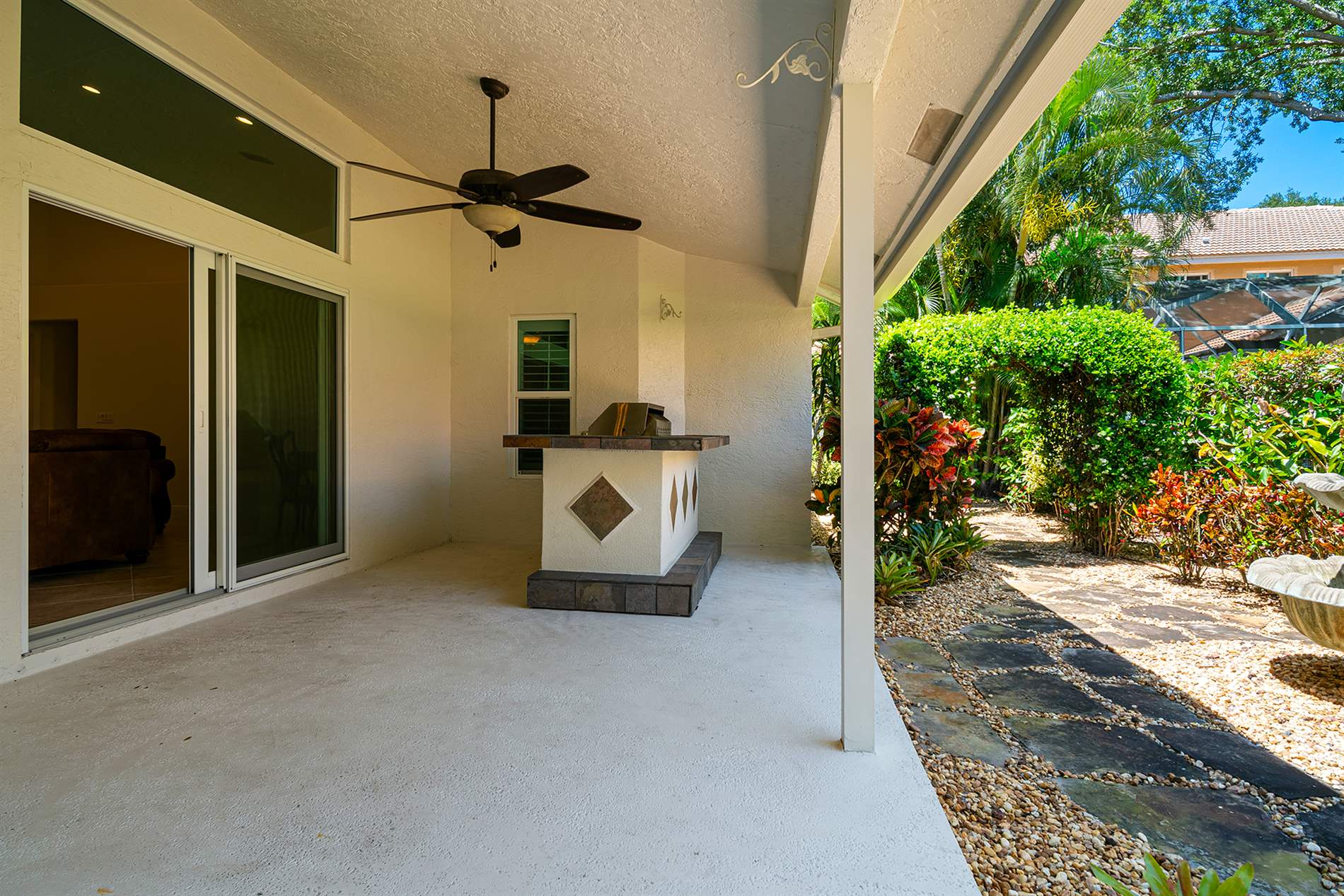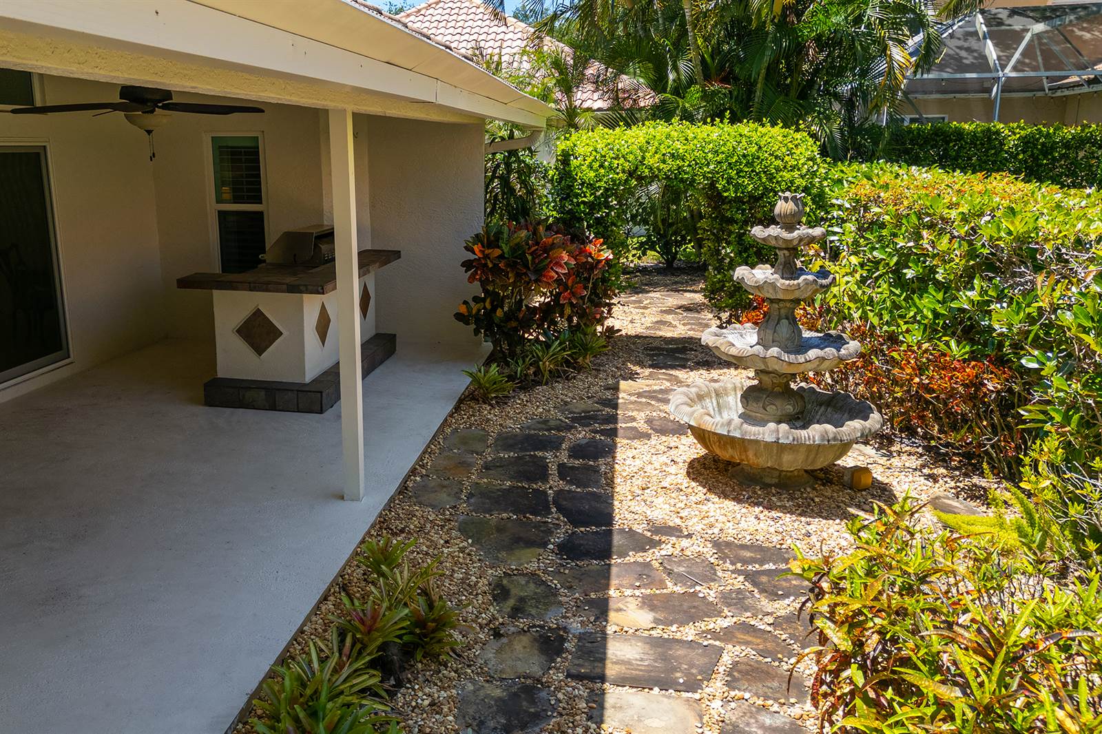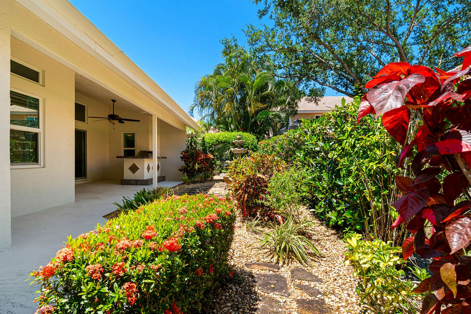 NEW 2025 ROOF IN PROGRESS! Turn Key spacious home with vaulted ceilings, new impact windows, door, and slider in 2022, Newly painted interior & exterior in 2024, new floors in 3 bedrooms in 2024, new central air & water heater in 2019, new light fixtures 2024, gas stove, gas washer & dryer, corner lot with spacious fenced in side yard perfect for entertaining or pool, Master bedroom has tray ceiling & glass slider to patio w/glass door entry to spacious lanai, Family room has glass sliders which open to lanai, lanai has custom summer kitchen w/rotisserie, fridge & stone counter & accents, outdoor water fountain in rear yard, new 2025 automatic digital Rachio sprinkler system, all GE stainless steel appliances, abundance of cabinetry w/pull out drawers, custom pantry, lots of granite counters & backsplash, bay windows, transom & palladium windows. Egret Landing in Jupiter, Florida is a popular, family-friendly neighborhood known for its spacious homes, resort-style amenities, and strong sense of community. The community is ideal for families, with wide, tree-lined streets, green spaces, and a safe, welcoming atmosphere. Residents have access to a well-equipped clubhouse, a large swimming pool, fitness center, basketball courts, seven tennis courts, playgrounds, and even RV and boat storage. The homeowners' association is active and regularly organizes social events that help foster neighborly connections. Egret Landing is conveniently located near downtown Abacoa, offering easy access to shops, restaurants, and entertainment, as well as Jupiter’s beautiful beaches and top-rated schools. Altogether, it combines comfortable living, a connected community, and a prime Jupiter location, making it a highly desirable place to call home. A+ rated schools, Low HOA!
