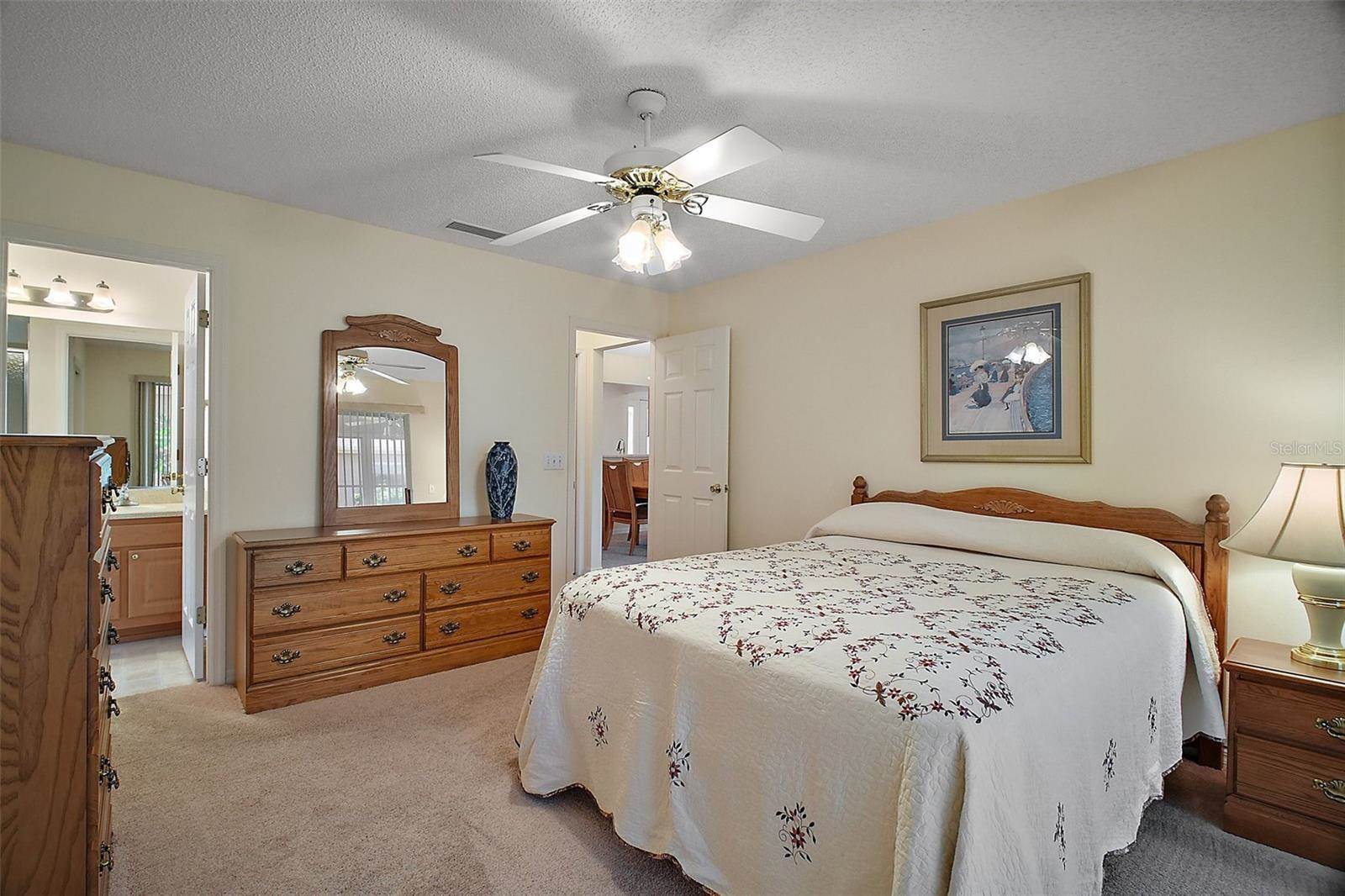The PRIMARY SUITE complete with a spacious walk-in closet, a walk-in shower, and dual sinks. The Laundry Room is in the hall right outside of the Primary Suite. On the opposite side of the home you will find a Guest Bedroom which also includes a spacious closet,