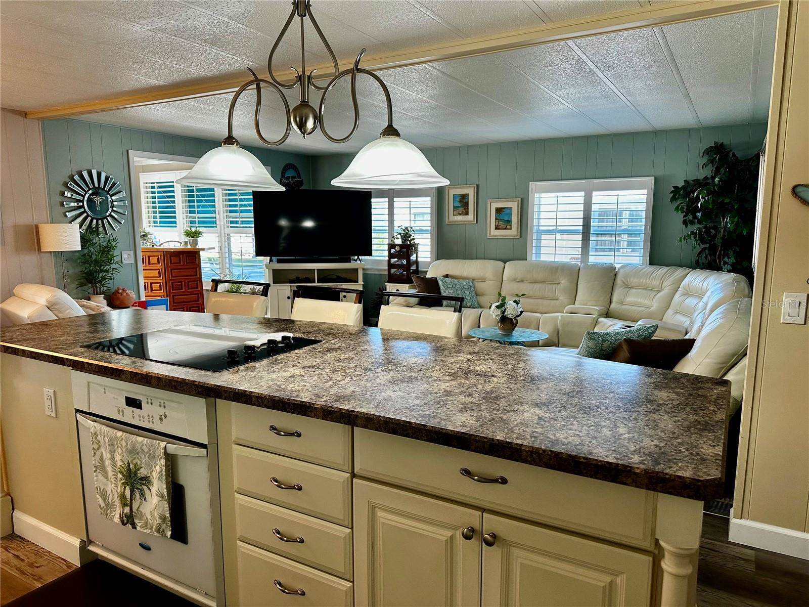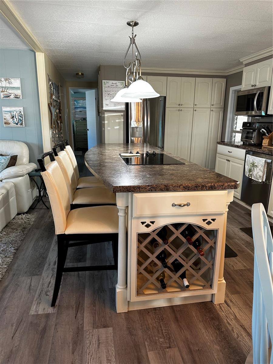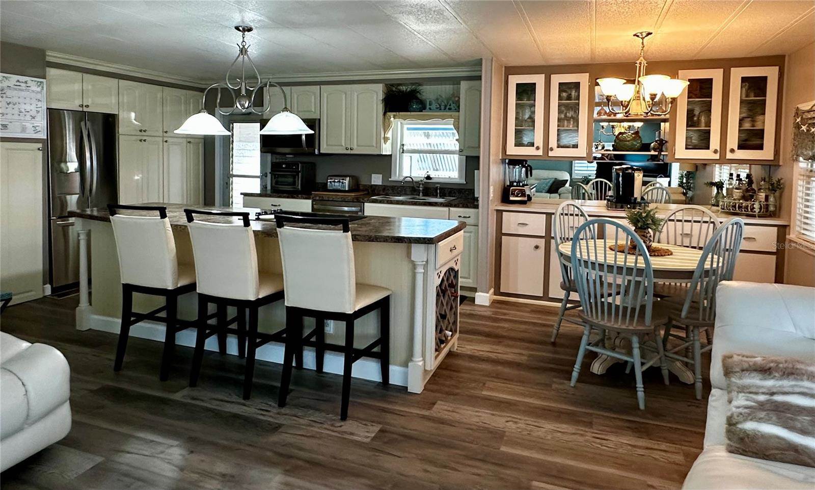 easy with a large sunny living room, fully stocked kitchen with island seating, built-in wine rack, and Florida room remodel with loads of natural light. The entire home is tastefully decorated showcasing a blend of style and functionality. The unique charm