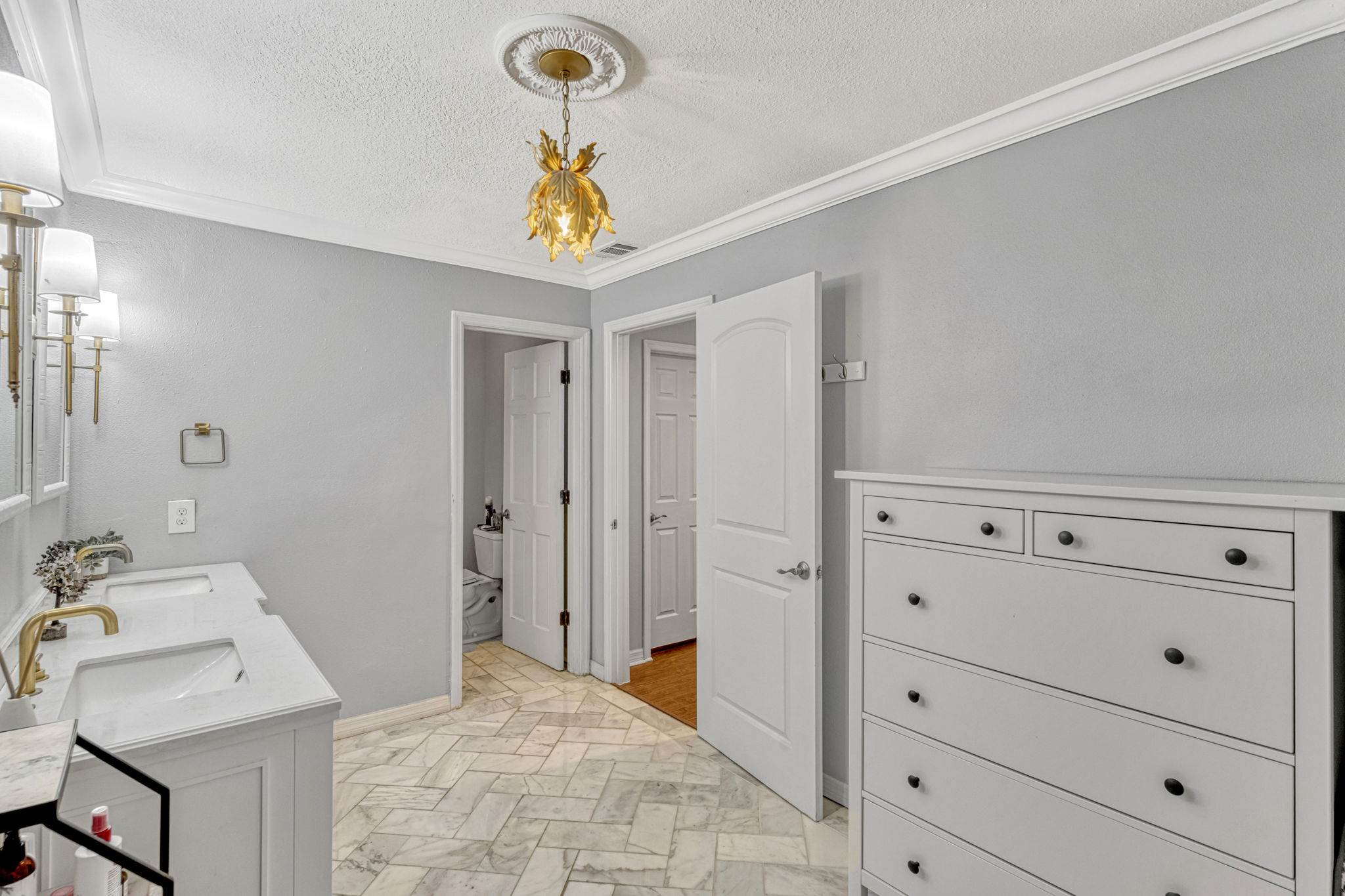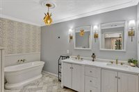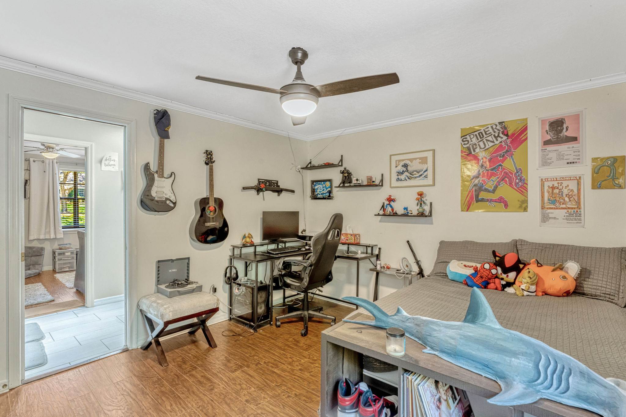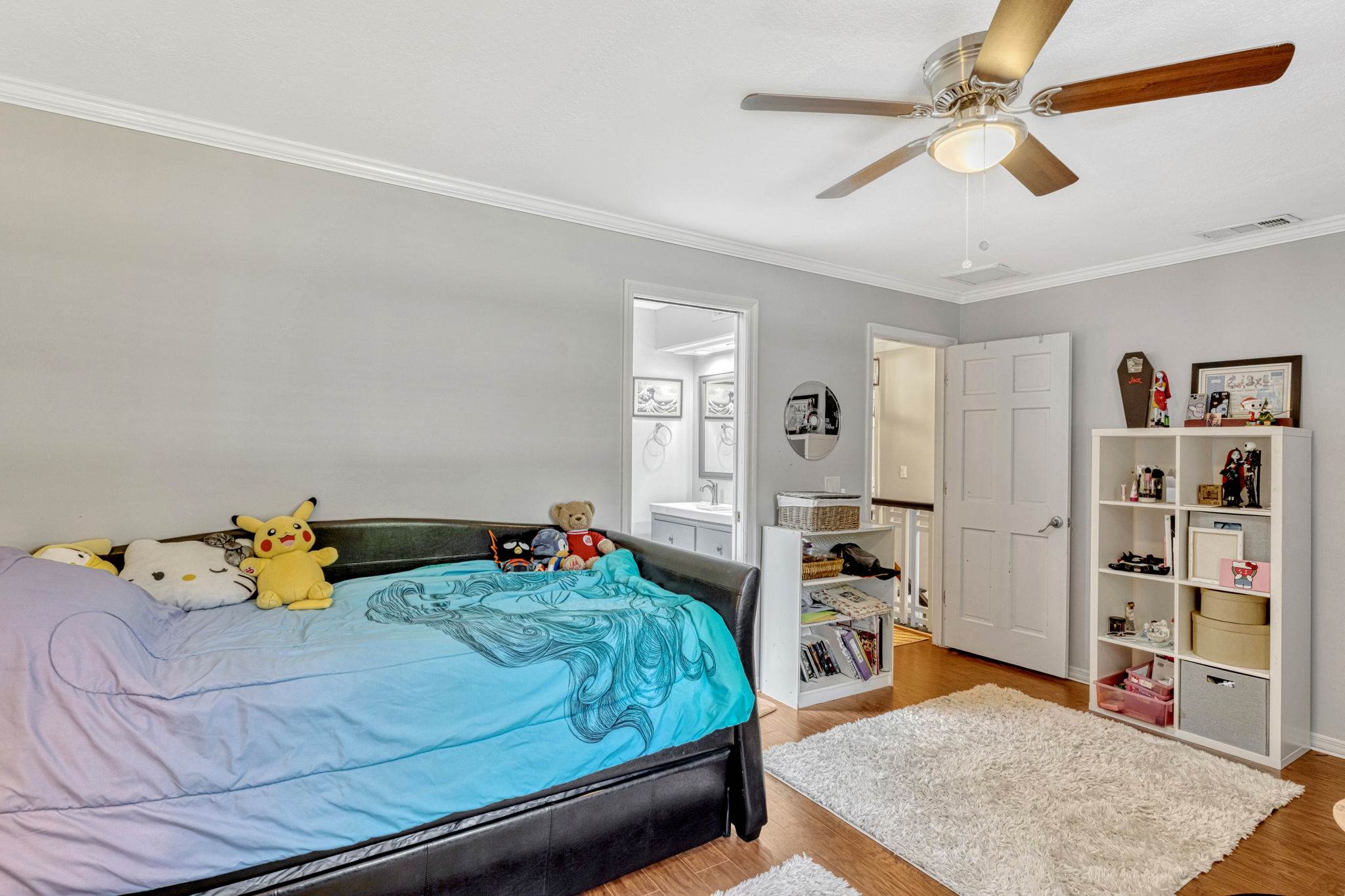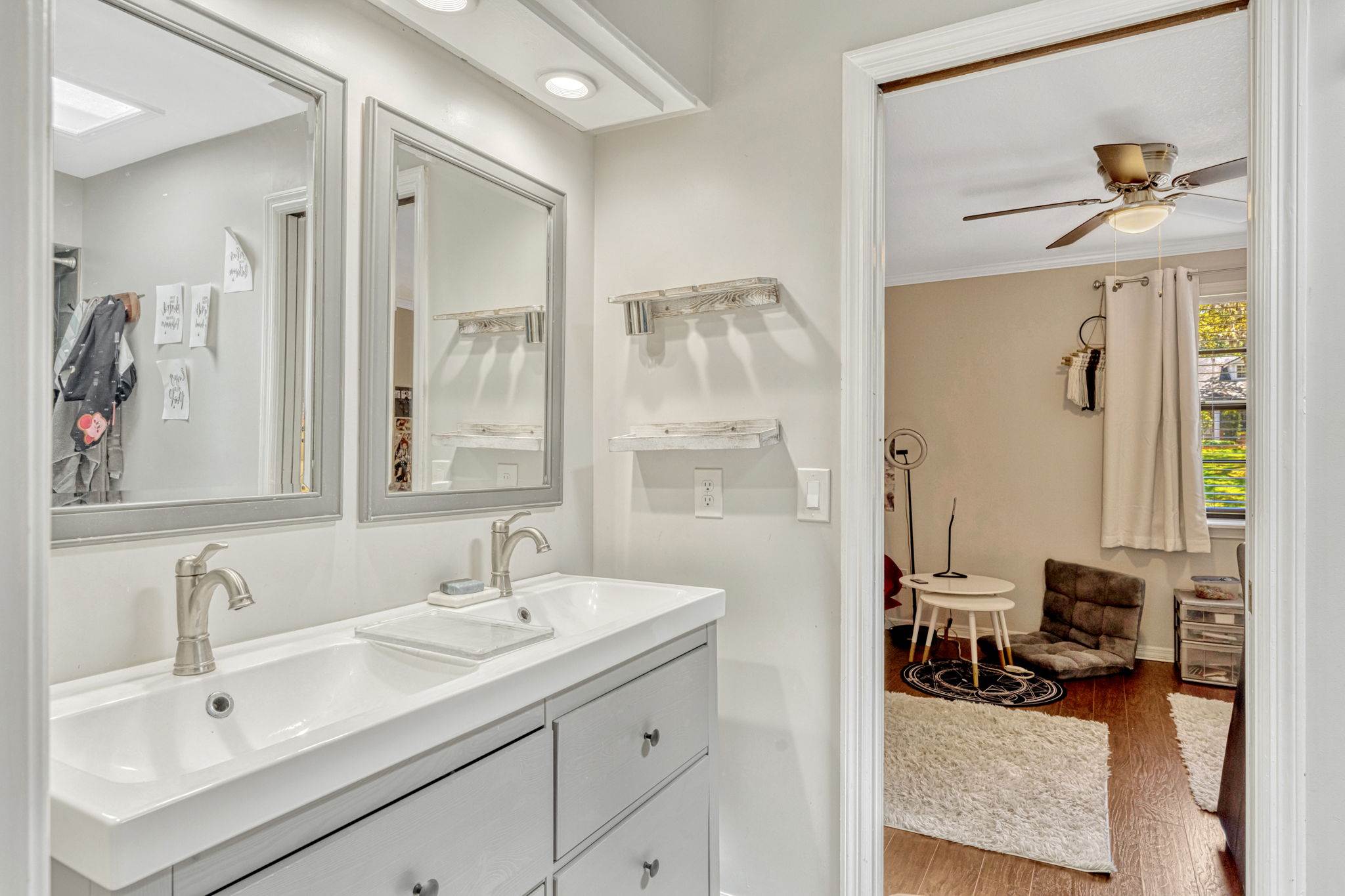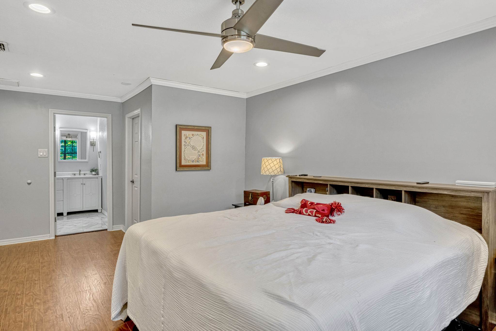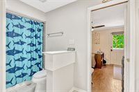 going upstairs you'll find two generously sized secondary bedrooms joined by a Jack and Jill bath, as well as the luxurious primary suite. The master retreat boasts an updated bath with frameless glass shower, dual-sink vanity, and a walk in closet. Additional