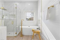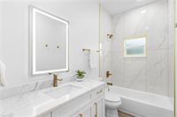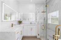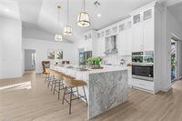 The split floor plan delivers maximum privacy for all residents with 2 master suites or in law suite and 2 bedrooms with access to their own bathroom. The kitchen is at the center of the home with custom wood shaker-style cabinetry, and a massive 12 foot Italian
