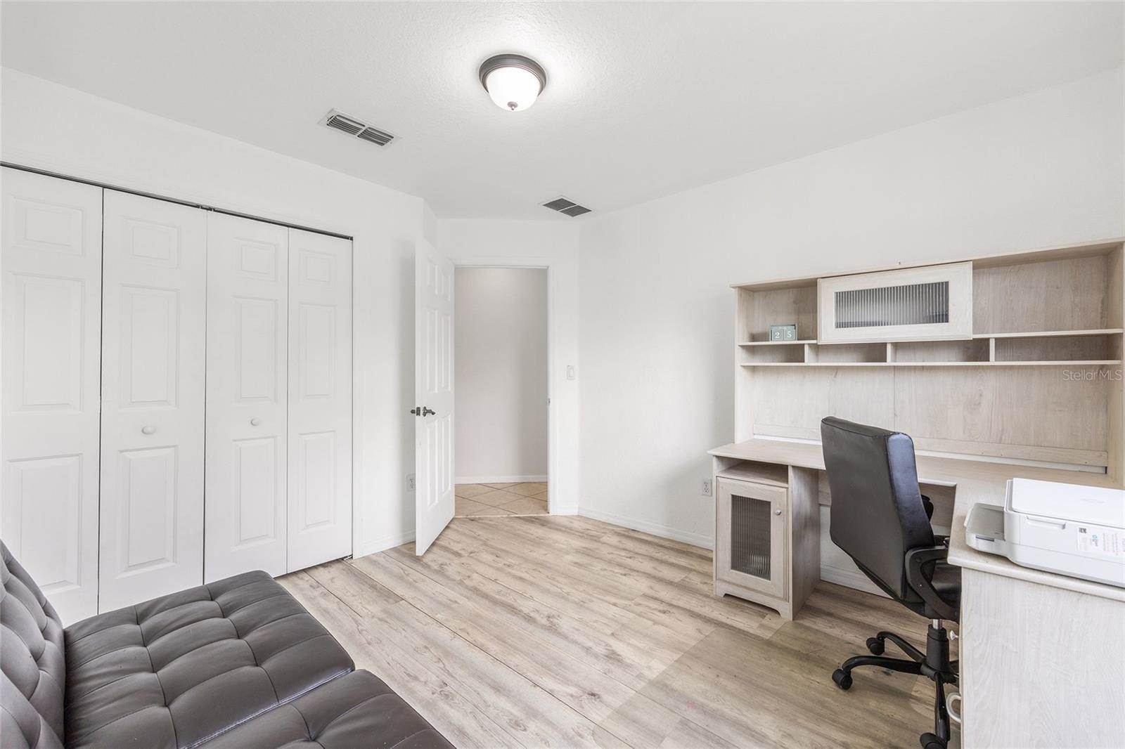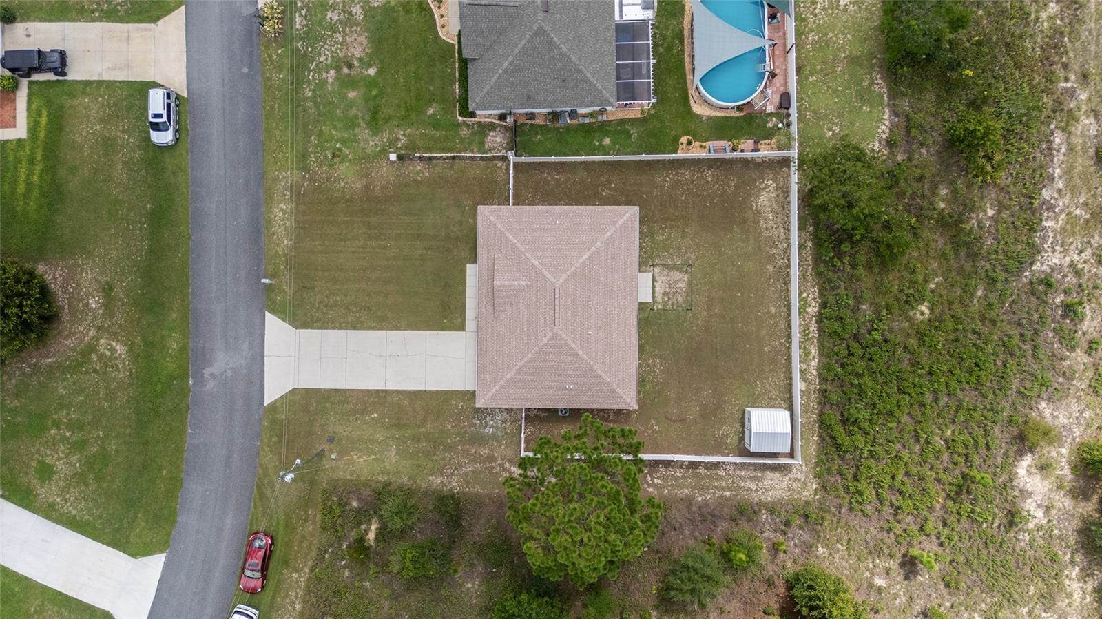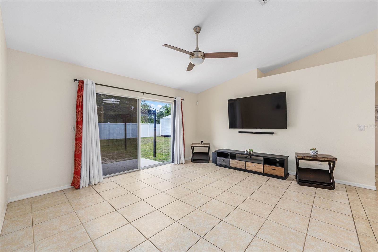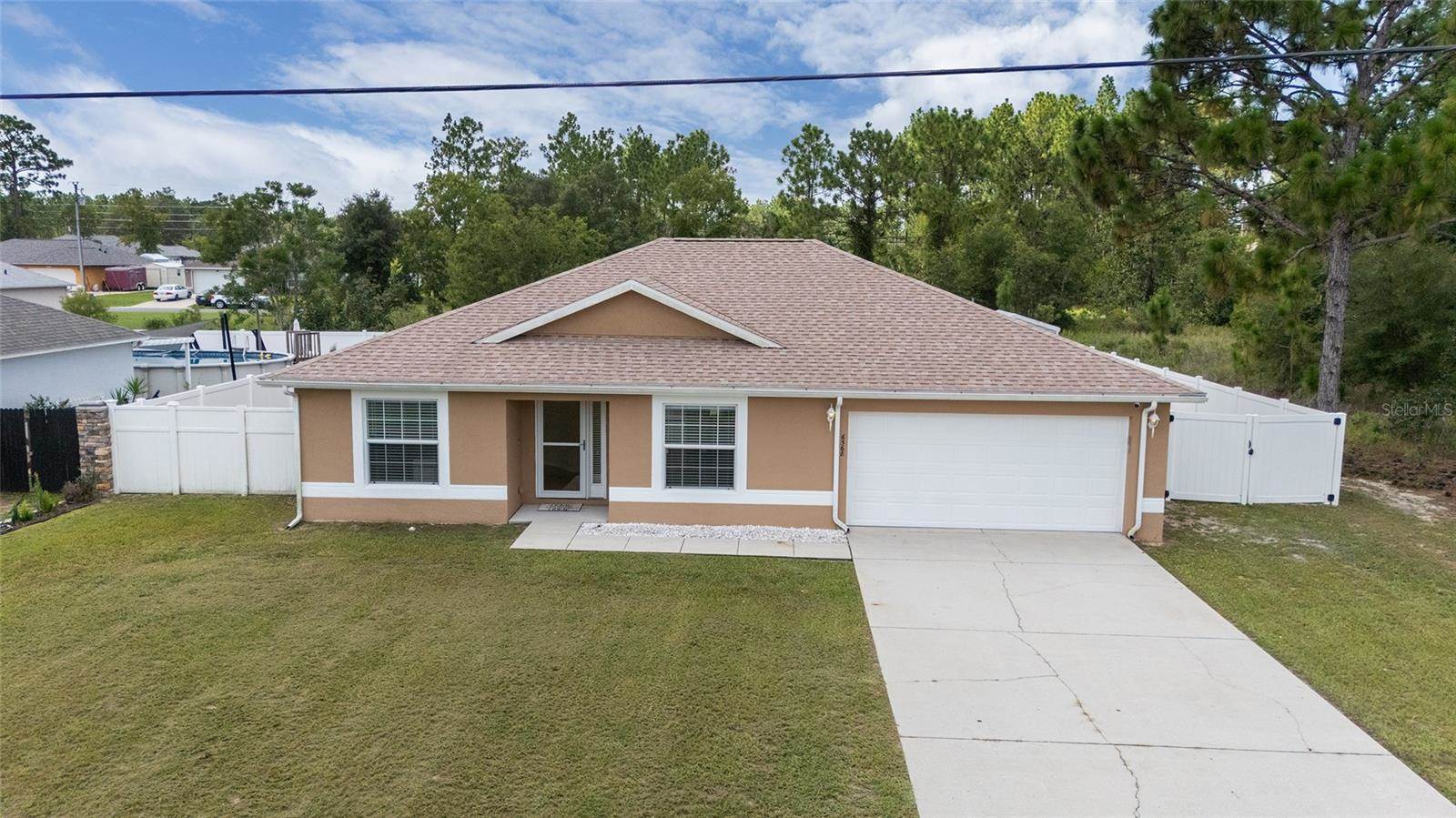 bedrooms and a full guest bath complete the layout. Outside, enjoy a fully fenced yard with white PVC fencing, an 8x8 shed, and a rear patio slab with a freestanding cabana. Located near HWY 484, I-75, shopping, parks, and schools. This home combines value,