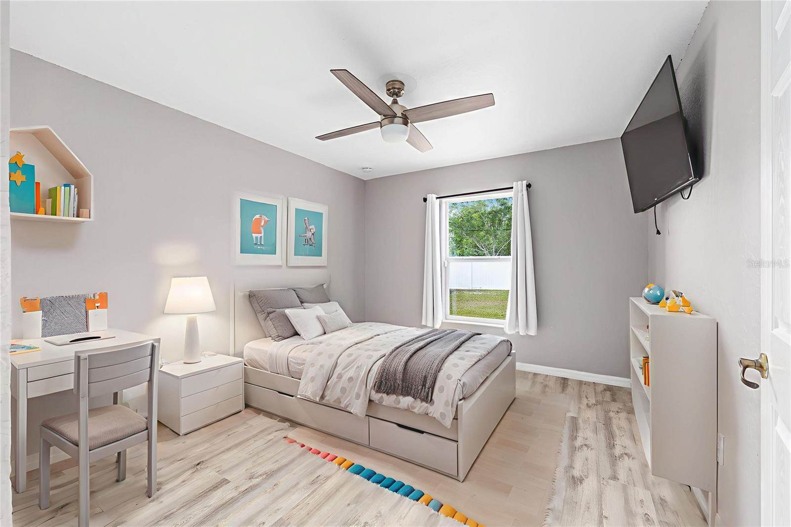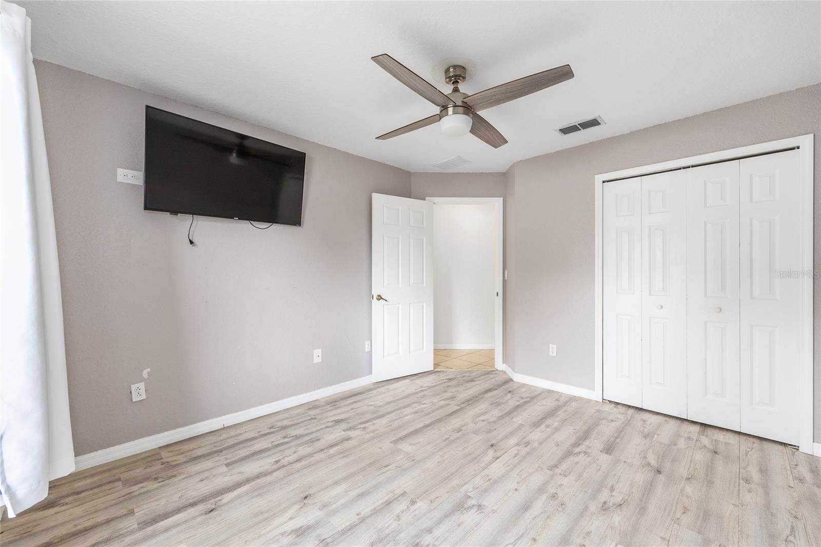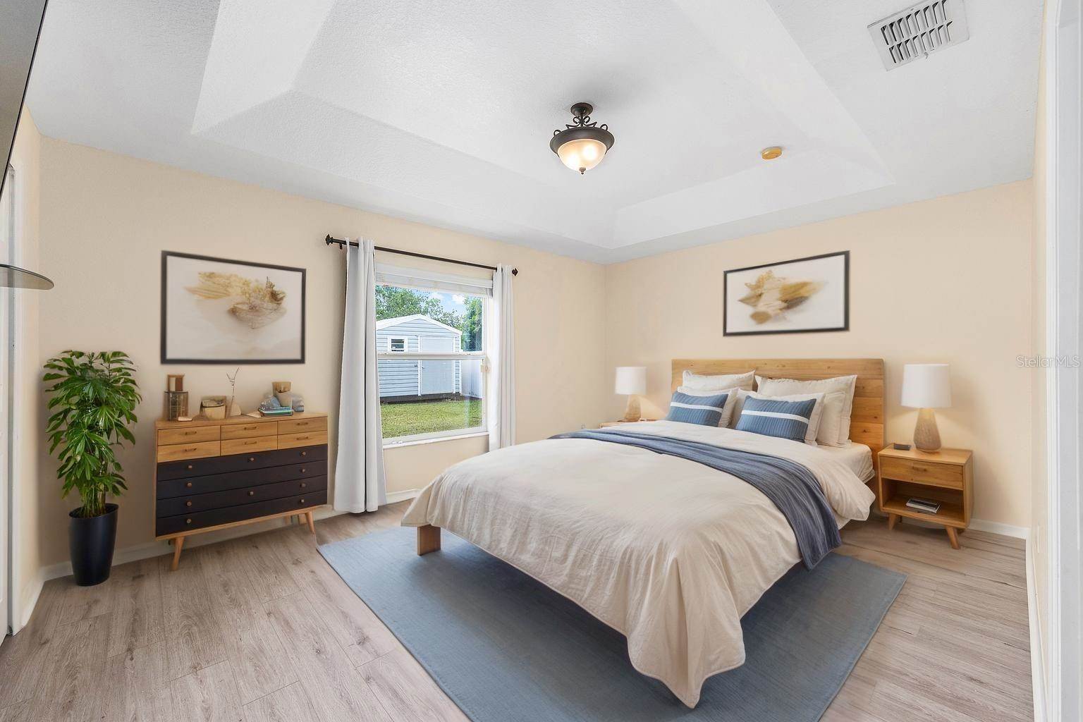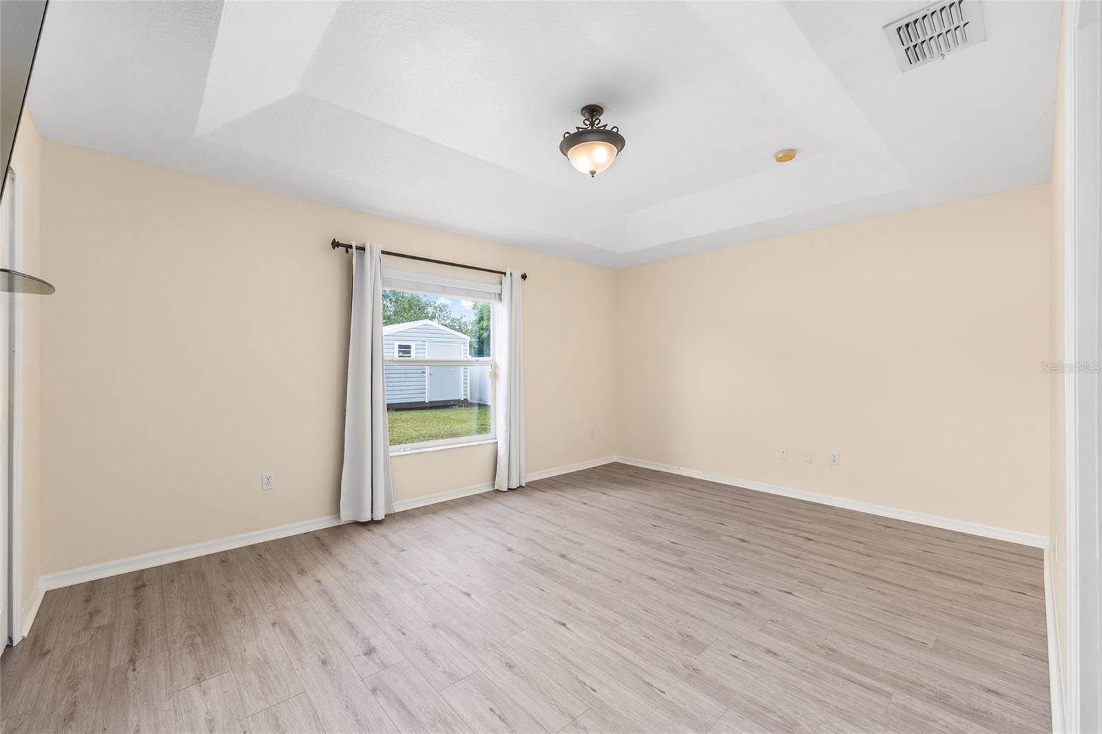 bedrooms and a full guest bath complete the layout. Outside, enjoy a fully fenced yard with white PVC fencing, an 8x8 shed, and a rear patio slab with a freestanding cabana. Located near HWY 484, I-75, shopping, parks, and schools. This home combines value,
