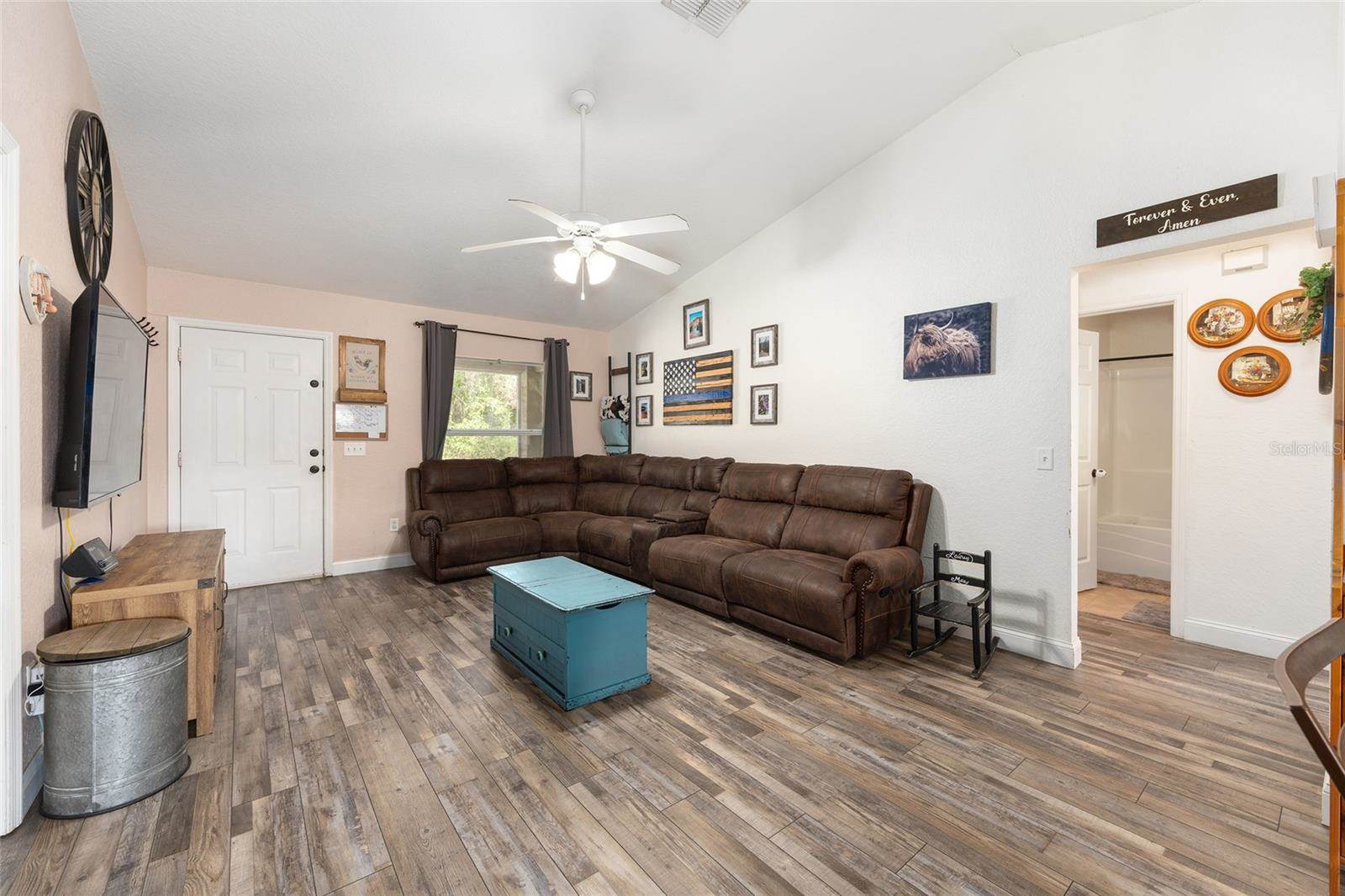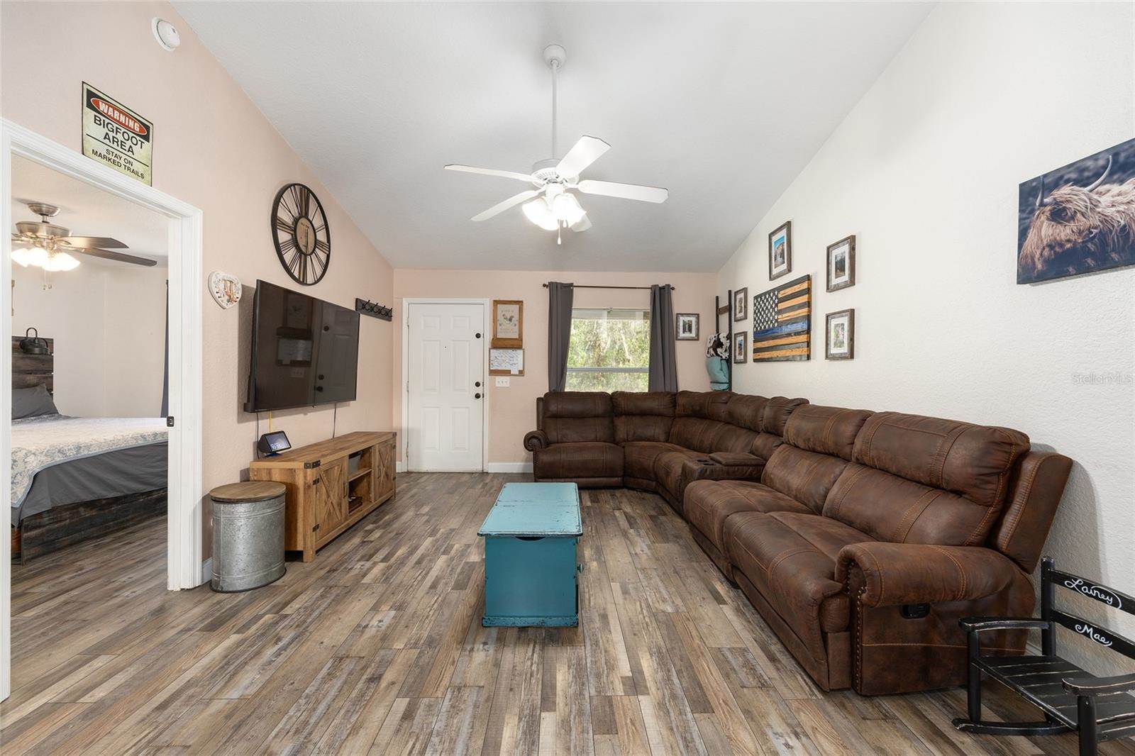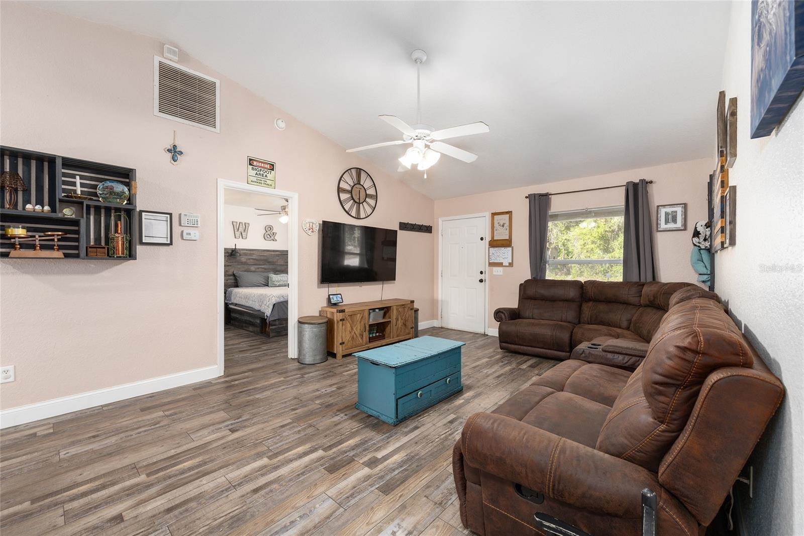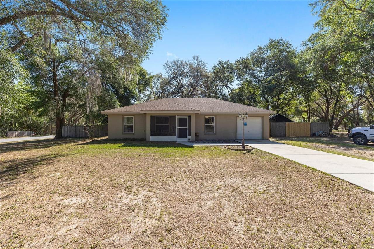 This beautiful move in ready 3-bedroom, 2-bathroom home comes with a BRAND NEW roof to be installed prior to closing. The best part is, the buyer gets to choose the color! AC replaced in 2024 for piece of mind this summer. Sitting on a fenced spacious corner lot just under half an acre, this home offers plenty of room to spread out both inside and out. The split floor plan provides privacy, and the updated kitchen features beautiful finishes and brand new stainless steel appliances. Outside, the fully fenced yard is perfect for animals or outdoor fun. Enjoy your morning coffee on the screened-in front patio, or relax in the large covered back patio. Well has new pressure switch, bladder tank & control box. Garage door opener is also new. This is your own private retreat at the end of the day all while feeling close to the outdoors & nature. This home has it all, ready for you to move in and make it your own. Sandhill Park, Community Center & grocery store less than 10 min away. Scheduling your private showing today!