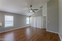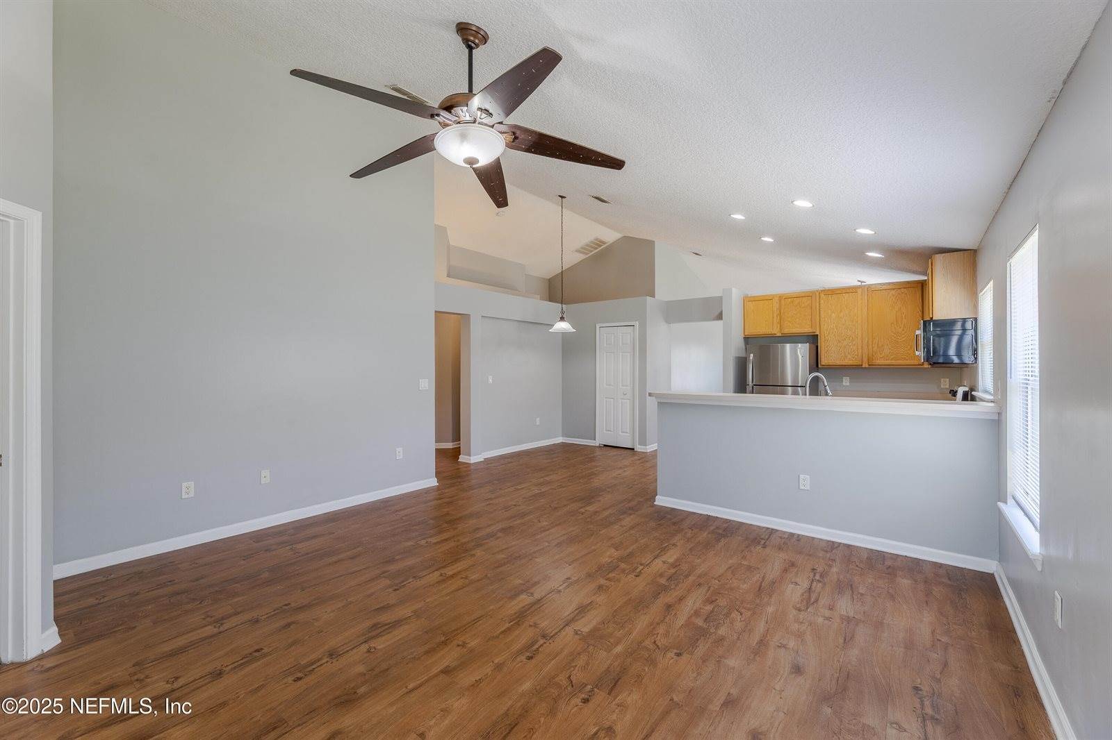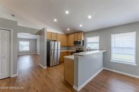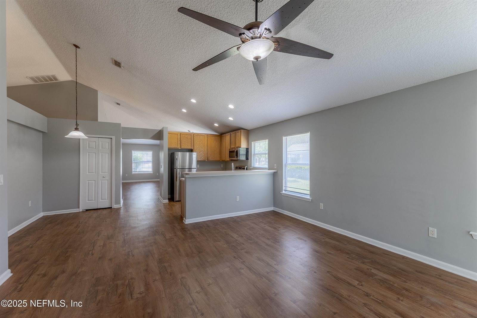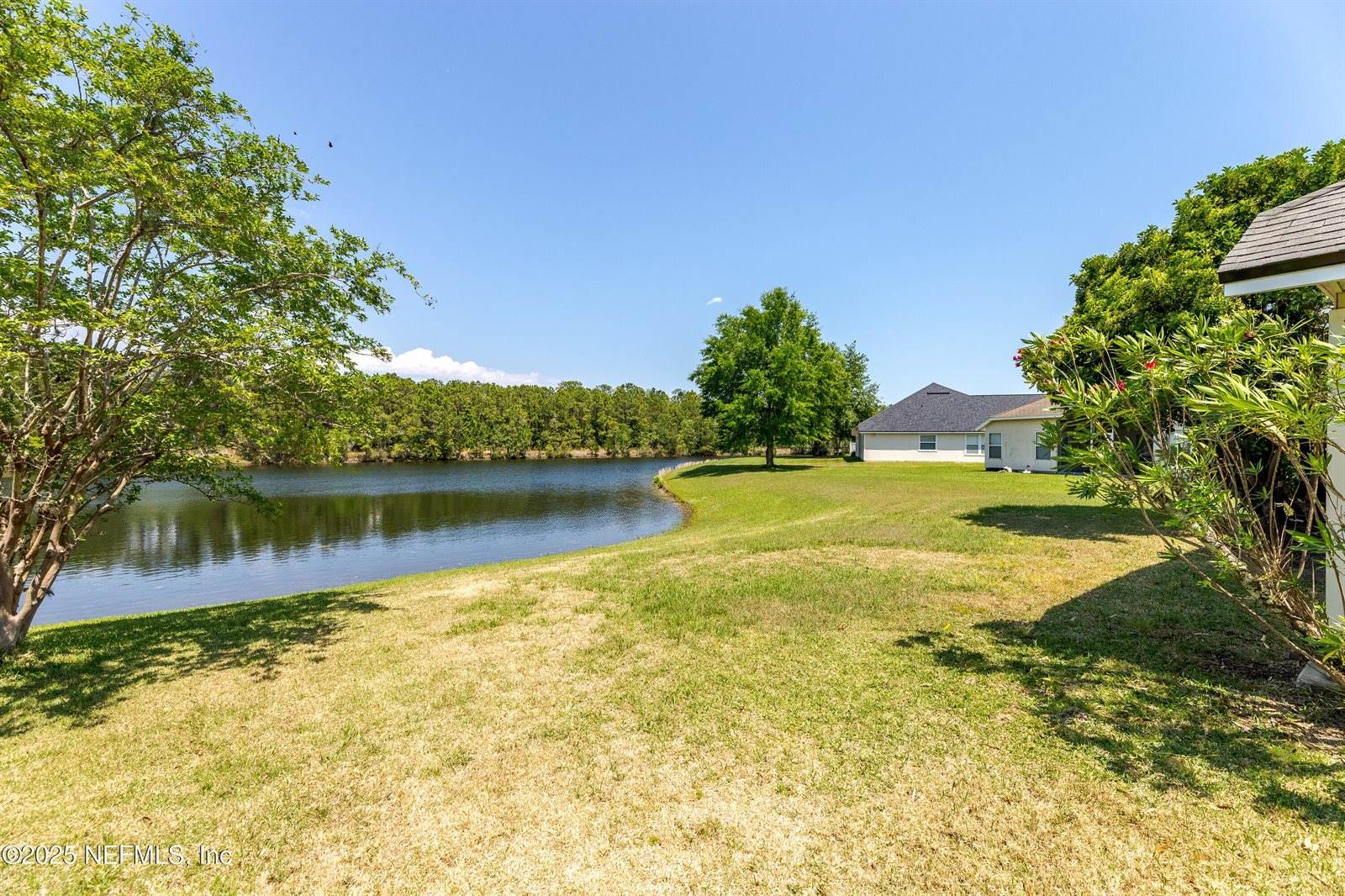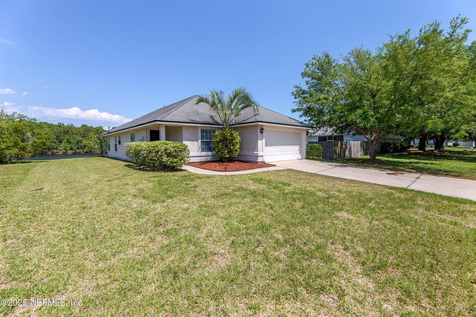 Imagine waking up to serene water views right from your backyard. This beautiful 4-bedroom, 2-bathroom home welcomes you with fresh paint throughout and a split floor plan perfect for privacy. The kitchen shines with stainless steel appliances and flows into the dining room—ideal for hosting. A spacious family room and cozy living room offer multiple spaces to relax or entertain. Retreat to the primary suite with a luxurious garden tub, your own private spa. Step outside to a covered patio overlooking the tranquil water—a perfect spot for morning coffee or evening sunsets. Just minutes from top-rated schools, shopping, dining, and everything Oakleaf has to offer—this home blends comfort, convenience, and charm all in one. This home is more than just a place to live—it's a lifestyle waiting to be embraced