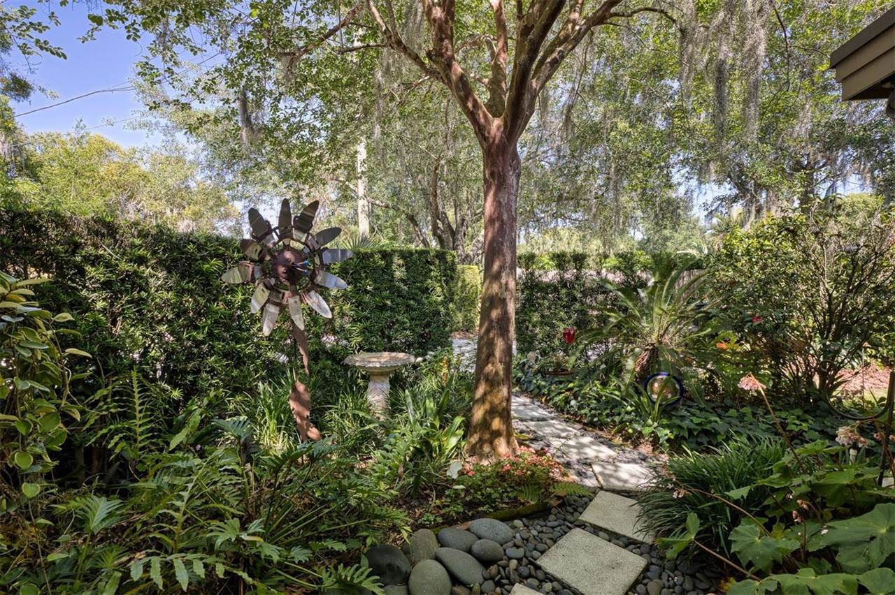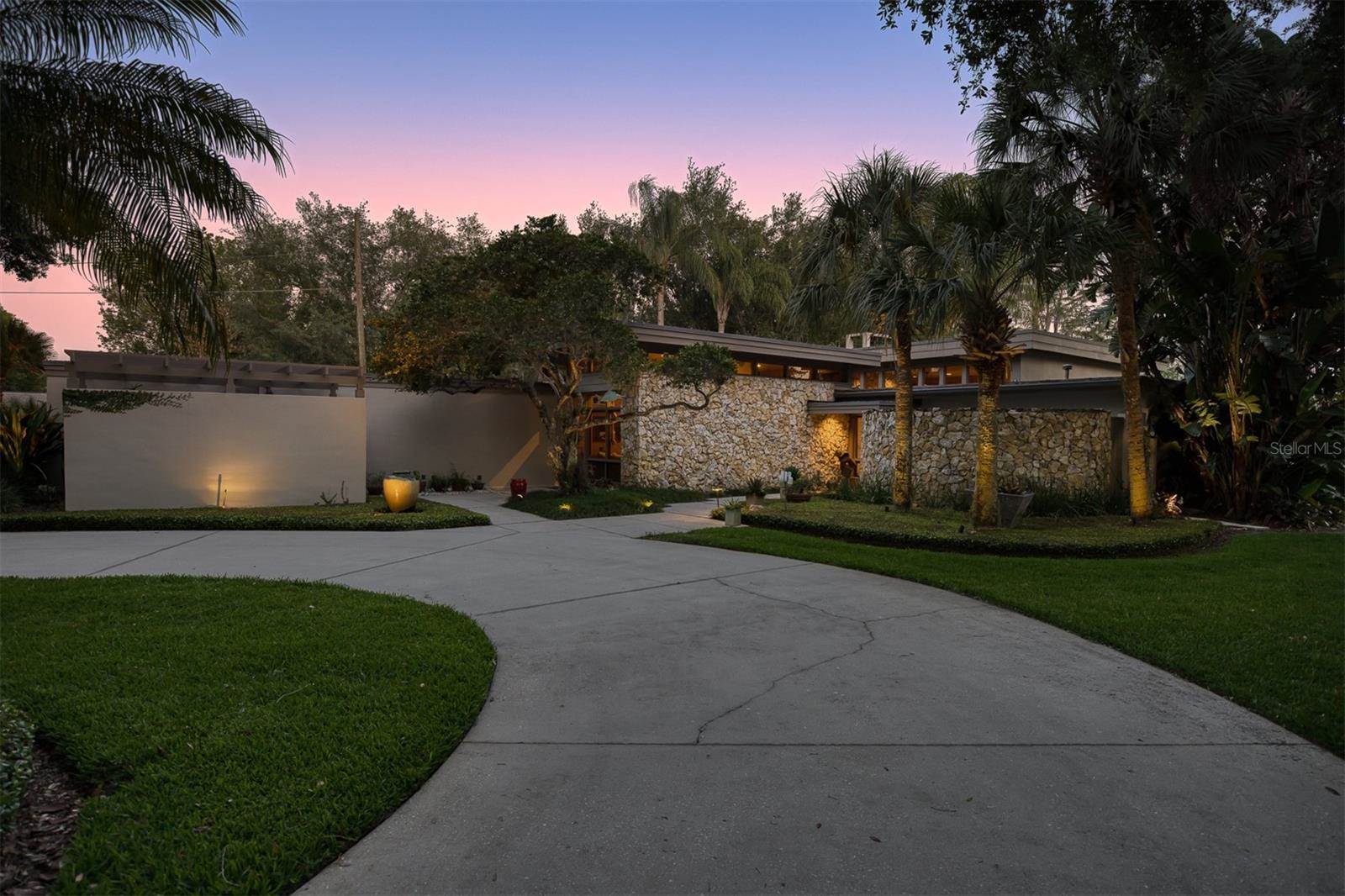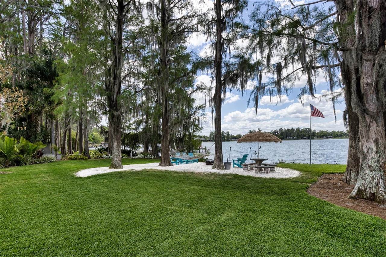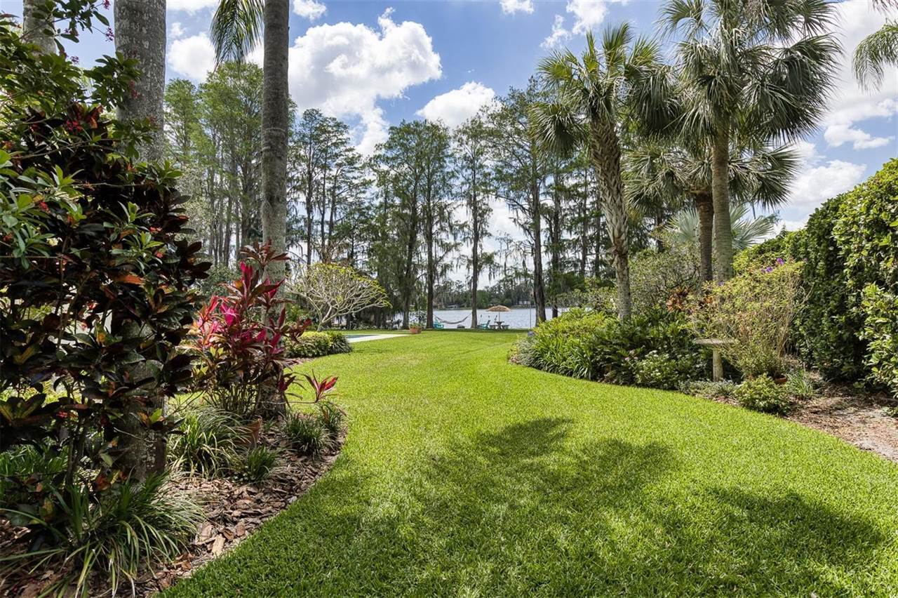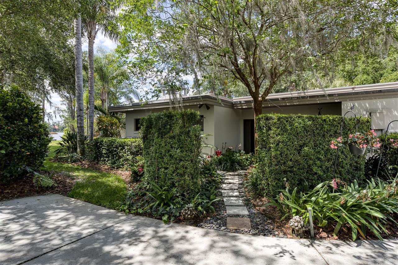 RARE OPPORTUNITY This is the first time in 25 years that this estate is available! The home and grounds have been completely reimagined from what it was 25 years ago. The home is one of only 7 homes designed in this style by local Orlando architect, Donovan Dean!Inspired by the Frank Lloyd Wright-Style of architecture and it lives up to it beautifully. Architecture and Lifestyle abound on this incredible lake front property that is meticulously landscaped from the entrance of the home down to the lake...including its own white sand beach escape. Landscape lighting covers the almost 2 acres and lake fed irrigation also runs the entire property. The gardens provide a magnificient variety of flora and fauna all year long. The custom lanai was designed to stay true to the original architecture and it is 28'x 15' Perfect for enjoying more of the outdoor space. Inside the home you will find the theme of Wood, Glass and Stone. The foyer is spacious and leads right into a wonderful transition area with a large dry bar and tons of under counter cabinet space. The rear of the living room is all glass to enjoy the views overlooking the pool, down to the beach and the lake. The wood burning fireplace is a work of art that soars to the height of the ceiling that is at almost 13 feet! In the Dining Room the ceiling height is compressed to make it more of an intimate setting. You will find 2 custom built-in Butler's pantries and directly across will be another custom built-in buffet with incredible storage. Storage has been so very well thought out and makes this home an incredible place for entertaining. The main bathroom is more like stepping into a spa with natural Red Cedar, Custom Cabinetry, Graff Fixtures and Travertine. However, the real stunner is the size of the walk-in shower and how it opens to a private outdoor garden. As a plus, you will also find an attached room off of the 2 car, oversized, garage. This room is perfect as a workshop, art space, or extra storage. Outside of the garage is very well thought out service yard. All bathrooms have been renovated, The largest A/C & Natural Gas Furnace were replaced in 2024. The Tankless Natural Gas Water Heater was also replaced in 2024. This Home has been well cared for inside and out. LOCATION LOCATION LOCATION!130 Feet of Lake FrontagePrivate 60+ Acre Spring fed Ski Lake with slalom course, Rear South Facing to enjoy the 16'x 34' Saltwater Pool with Sun Shelf, Private White Sand Beach and Lake Views. Approximately 3 miles due South of Downtown Orlando and roughly 3 miles from the brand new Epic Universe Theme Park...one of the closest Lake Front Homes to Epic Universe. Close to everything and yet far enough away to feel secluded and remote. Rare Opportunities Don't Last Long.