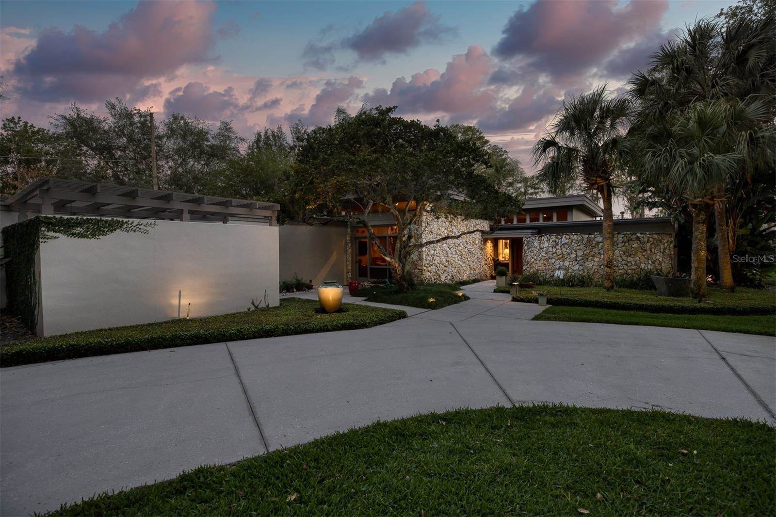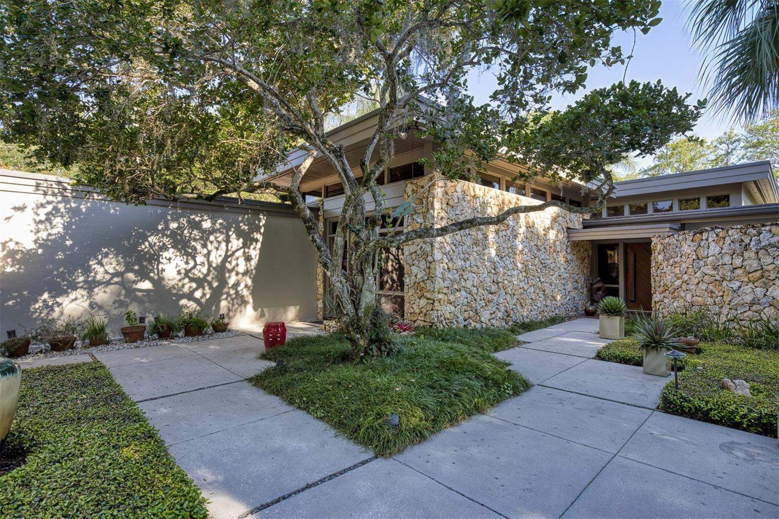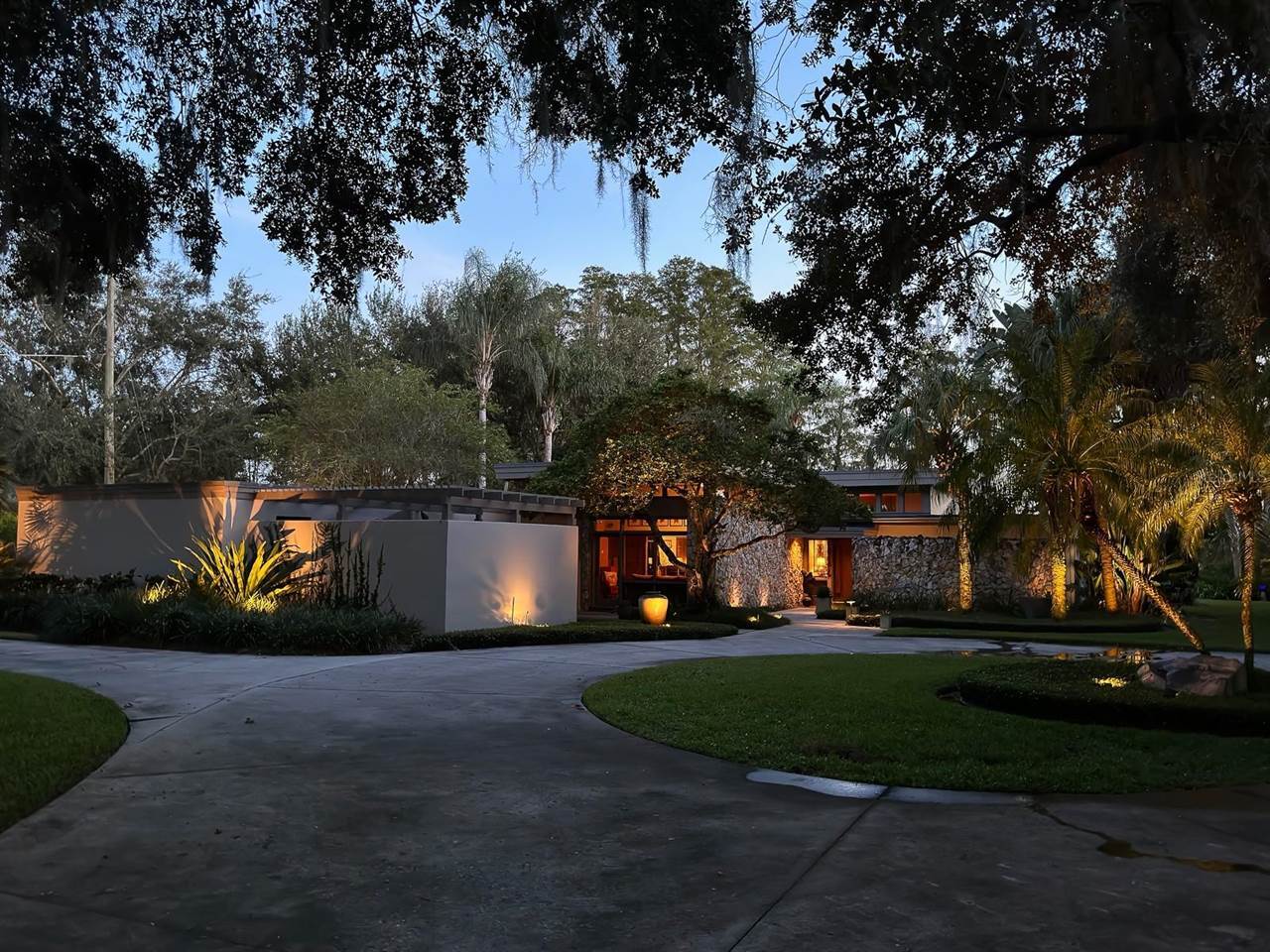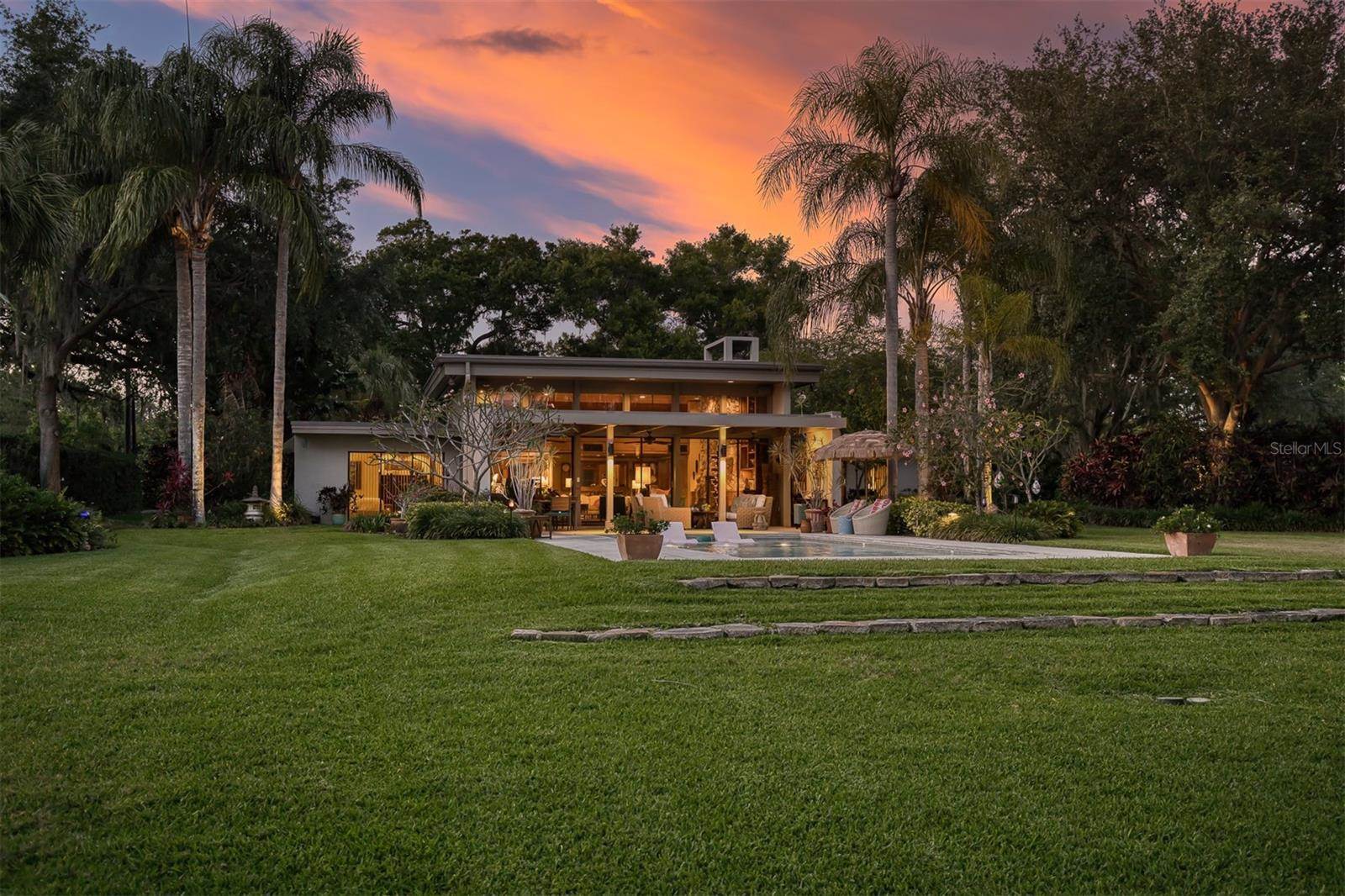 RARE OPPORTUNITY This is the first time in 25 years that this estate is available! The home and grounds have been completely reimagined from what it was 25 years ago. The home is one of only 7 homes designed in this style by local Orlando architect, Donovan Dean!Inspired by the Frank Lloyd Wright-Style of architecture and it lives up to it beautifully. Architecture and Lifestyle abound on this incredible lake front property that is meticulously landscaped from the entrance of the home down to the lake...including its own white sand beach escape. Landscape lighting covers the almost 2 acres and lake fed irrigation also runs the entire property. The gardens provide a magnificient variety of flora and fauna all year long. The custom lanai was designed to stay true to the original architecture and it is 28'x 15' Perfect for enjoying more of the outdoor space. Inside the home you will find the theme of Wood, Glass and Stone. The foyer is spacious and leads right into a wonderful transition area with a large dry bar and tons of under counter cabinet space. The rear of the living room is all glass to enjoy the views overlooking the pool, down to the beach and the lake. The wood burning fireplace is a work of art that soars to the height of the ceiling that is at almost 13 feet! In the Dining Room the ceiling height is compressed to make it more of an intimate setting. You will find 2 custom built-in Butler's pantries and directly across will be another custom built-in buffet with incredible storage. Storage has been so very well thought out and makes this home an incredible place for entertaining. The main bathroom is more like stepping into a spa with natural Red Cedar, Custom Cabinetry, Graff Fixtures and Travertine. However, the real stunner is the size of the walk-in shower and how it opens to a private outdoor garden. As a plus, you will also find an attached room off of the 2 car, oversized, garage. This room is perfect as a workshop, art space, or extra storage. Outside of the garage is very well thought out service yard. All bathrooms have been renovated, The largest A/C & Natural Gas Furnace were replaced in 2024. The Tankless Natural Gas Water Heater was also replaced in 2024. This Home has been well cared for inside and out. LOCATION LOCATION LOCATION!130 Feet of Lake FrontagePrivate 60+ Acre Spring fed Ski Lake with slalom course, Rear South Facing to enjoy the 16'x 34' Saltwater Pool with Sun Shelf, Private White Sand Beach and Lake Views. Approximately 3 miles due South of Downtown Orlando and roughly 3 miles from the brand new Epic Universe Theme Park...one of the closest Lake Front Homes to Epic Universe. Close to everything and yet far enough away to feel secluded and remote. Rare Opportunities Don't Last Long.