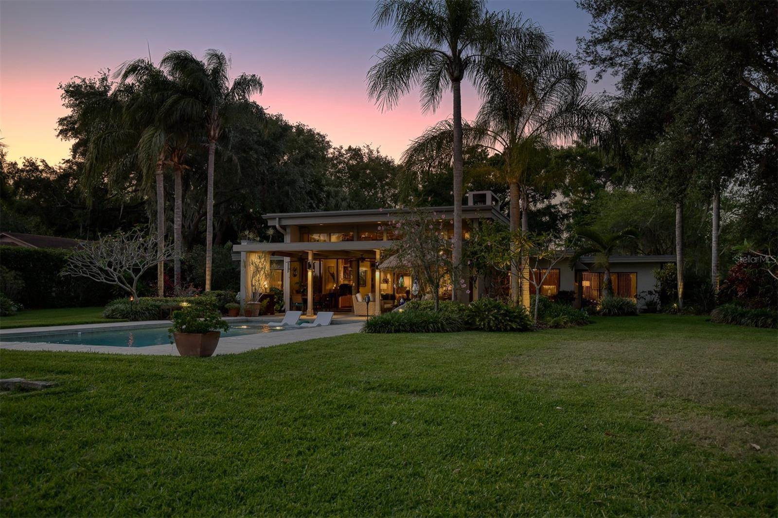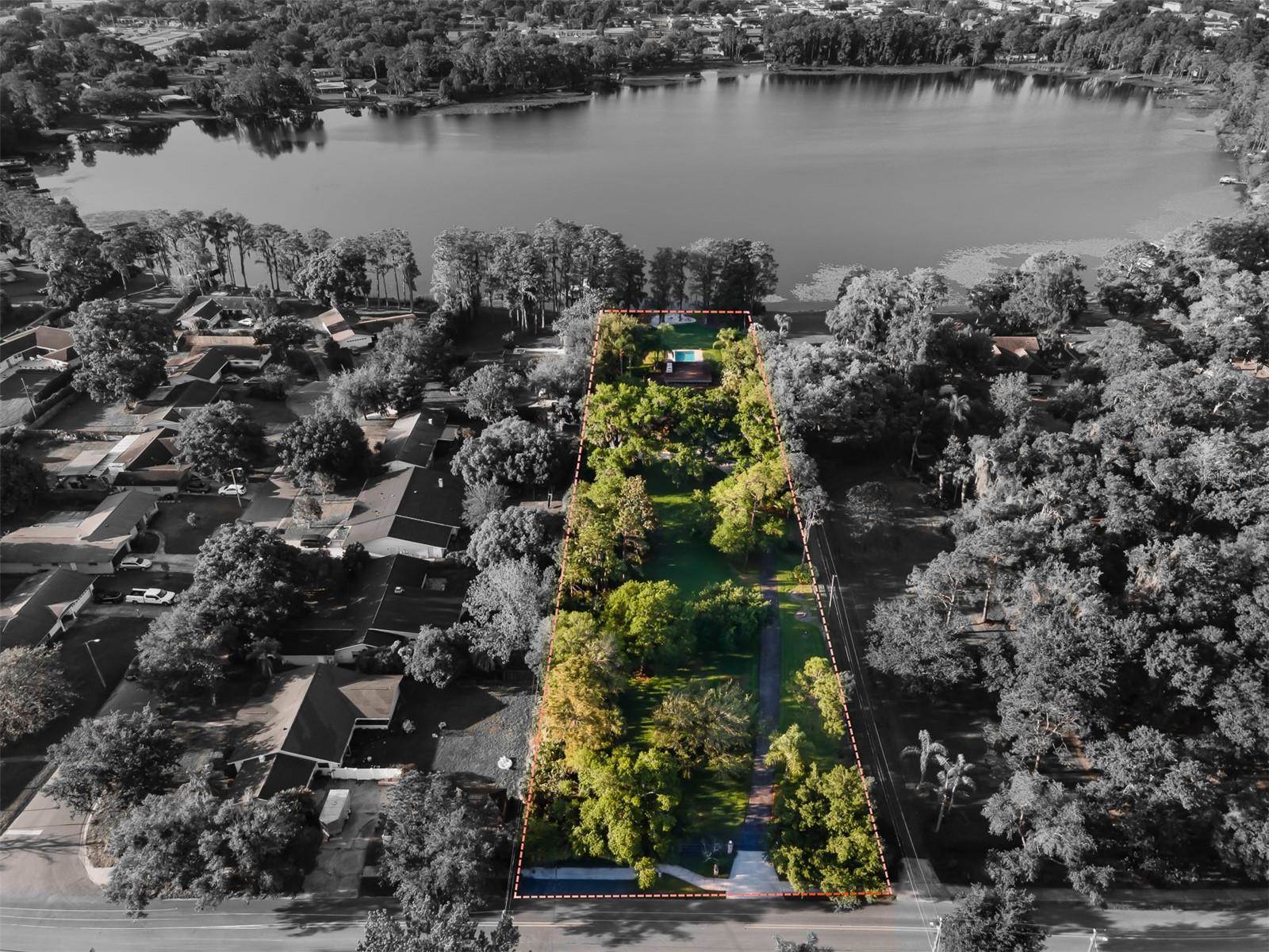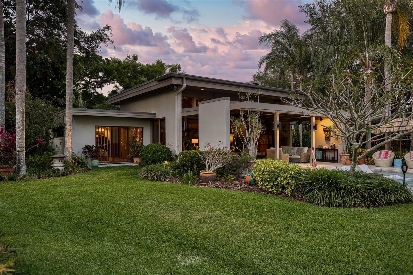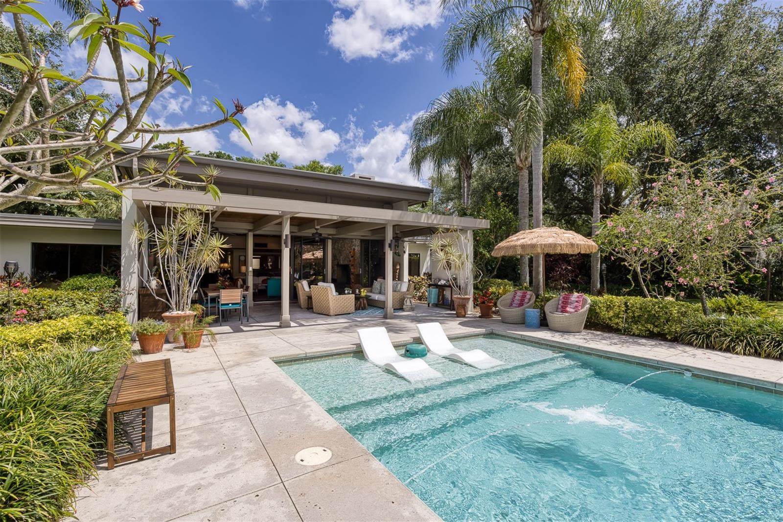 RARE OPPORTUNITY This is the first time in 25 years that this estate is available! The home and grounds have been completely reimagined from what it was 25 years ago. The home is one of only 7 homes designed in this style by local Orlando architect, Donovan Dean!Inspired by the Frank Lloyd Wright-Style of architecture and it lives up to it beautifully. Architecture and Lifestyle abound on this incredible lake front property that is meticulously landscaped from the entrance of the home down to the lake...including its own white sand beach escape. Landscape lighting covers the almost 2 acres and lake fed irrigation also runs the entire property. The gardens provide a magnificient variety of flora and fauna all year long. The custom lanai was designed to stay true to the original architecture and it is 28'x 15' Perfect for enjoying more of the outdoor space. Inside the home you will find the theme of Wood, Glass and Stone. The foyer is spacious and leads right into a wonderful transition area with a large dry bar and tons of under counter cabinet space. The rear of the living room is all glass to enjoy the views overlooking the pool, down to the beach and the lake. The wood burning fireplace is a work of art that soars to the height of the ceiling that is at almost 13 feet! In the Dining Room the ceiling height is compressed to make it more of an intimate setting. You will find 2 custom built-in Butler's pantries and directly across will be another custom built-in buffet with incredible storage. Storage has been so very well thought out and makes this home an incredible place for entertaining. The main bathroom is more like stepping into a spa with natural Red Cedar, Custom Cabinetry, Graff Fixtures and Travertine. However, the real stunner is the size of the walk-in shower and how it opens to a private outdoor garden. As a plus, you will also find an attached room off of the 2 car, oversized, garage. This room is perfect as a workshop, art space, or extra storage. Outside of the garage is very well thought out service yard. All bathrooms have been renovated, The largest A/C & Natural Gas Furnace were replaced in 2024. The Tankless Natural Gas Water Heater was also replaced in 2024. This Home has been well cared for inside and out. LOCATION LOCATION LOCATION!130 Feet of Lake FrontagePrivate 60+ Acre Spring fed Ski Lake with slalom course, Rear South Facing to enjoy the 16'x 34' Saltwater Pool with Sun Shelf, Private White Sand Beach and Lake Views. Approximately 3 miles due South of Downtown Orlando and roughly 3 miles from the brand new Epic Universe Theme Park...one of the closest Lake Front Homes to Epic Universe. Close to everything and yet far enough away to feel secluded and remote. Rare Opportunities Don't Last Long.