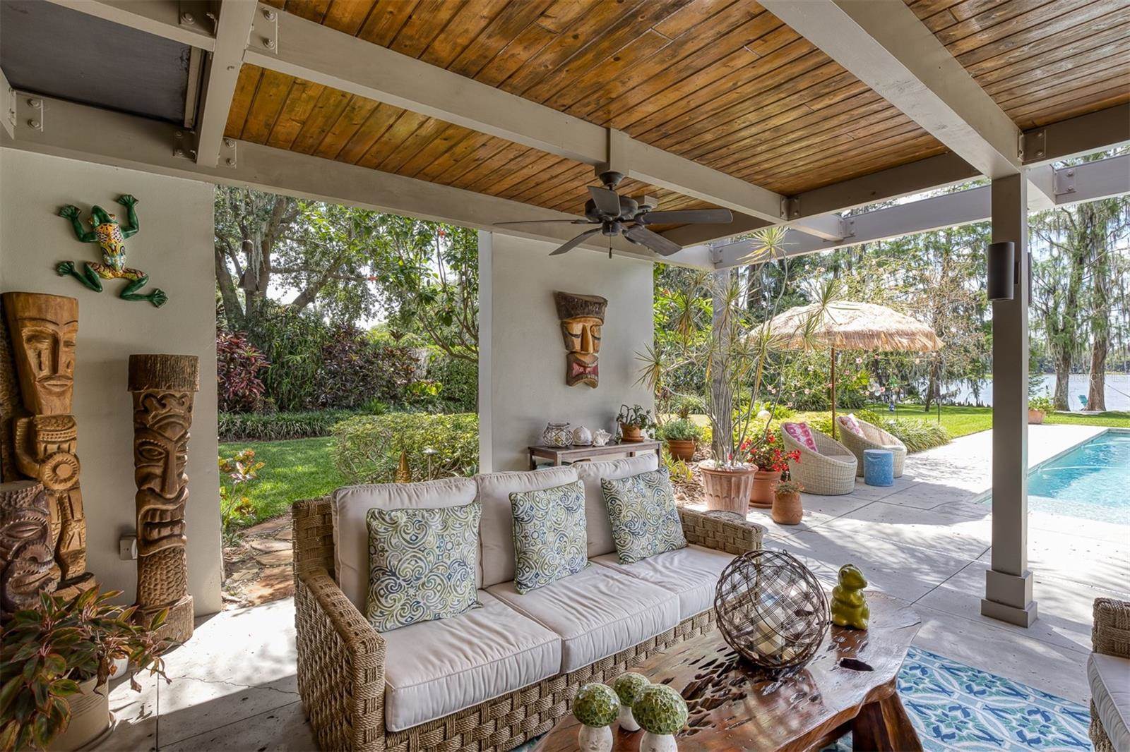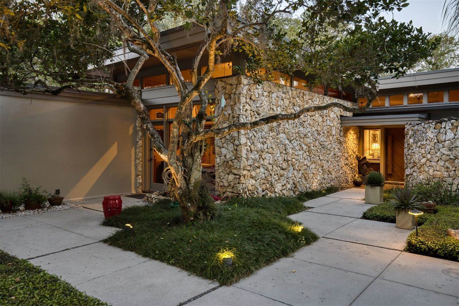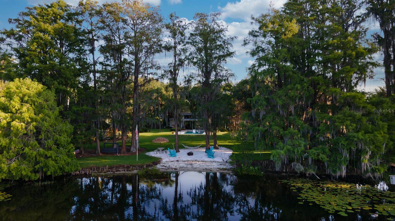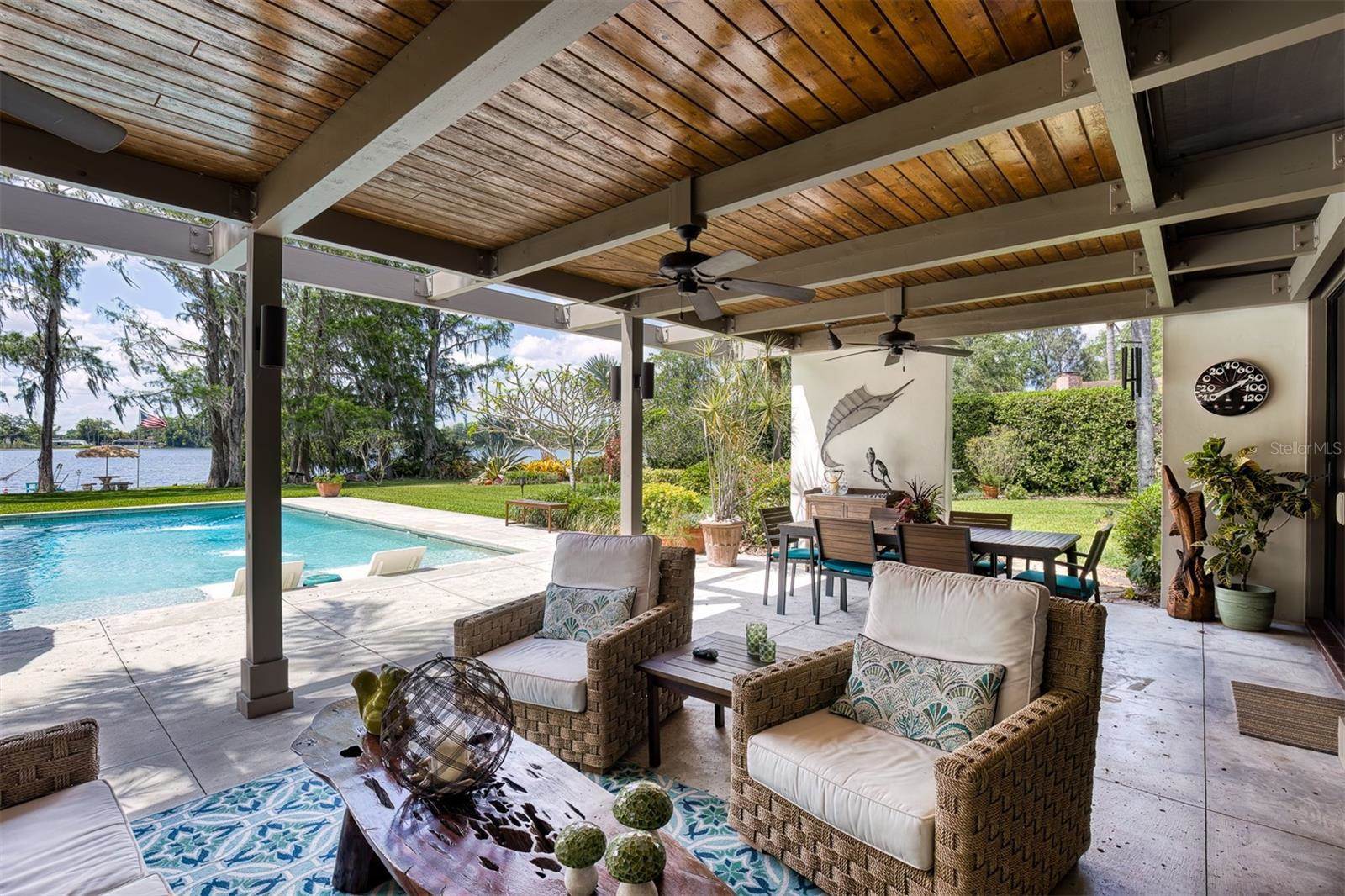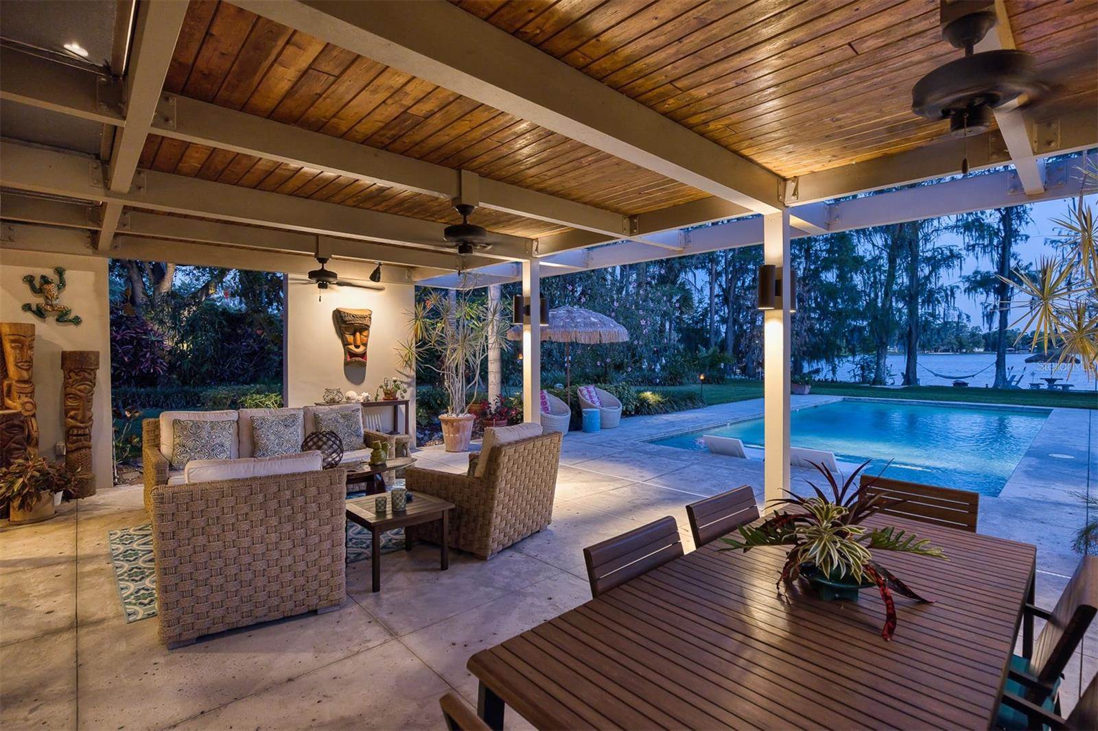 RARE OPPORTUNITY This is the first time in 25 years that this estate is available! The home and grounds have been completely reimagined from what it was 25 years ago. The home is one of only 7 homes designed in this style by local Orlando architect, Donovan Dean!Inspired by the Frank Lloyd Wright-Style of architecture and it lives up to it beautifully. Architecture and Lifestyle abound on this incredible lake front property that is meticulously landscaped from the entrance of the home down to the lake...including its own white sand beach escape. Landscape lighting covers the almost 2 acres and lake fed irrigation also runs the entire property. The gardens provide a magnificient variety of flora and fauna all year long. The custom lanai was designed to stay true to the original architecture and it is 28'x 15' Perfect for enjoying more of the outdoor space. Inside the home you will find the theme of Wood, Glass and Stone. The foyer is spacious and leads right into a wonderful transition area with a large dry bar and tons of under counter cabinet space. The rear of the living room is all glass to enjoy the views overlooking the pool, down to the beach and the lake. The wood burning fireplace is a work of art that soars to the height of the ceiling that is at almost 13 feet! In the Dining Room the ceiling height is compressed to make it more of an intimate setting. You will find 2 custom built-in Butler's pantries and directly across will be another custom built-in buffet with incredible storage. Storage has been so very well thought out and makes this home an incredible place for entertaining. The main bathroom is more like stepping into a spa with natural Red Cedar, Custom Cabinetry, Graff Fixtures and Travertine. However, the real stunner is the size of the walk-in shower and how it opens to a private outdoor garden. As a plus, you will also find an attached room off of the 2 car, oversized, garage. This room is perfect as a workshop, art space, or extra storage. Outside of the garage is very well thought out service yard. All bathrooms have been renovated, The largest A/C & Natural Gas Furnace were replaced in 2024. The Tankless Natural Gas Water Heater was also replaced in 2024. This Home has been well cared for inside and out. LOCATION LOCATION LOCATION!130 Feet of Lake FrontagePrivate 60+ Acre Spring fed Ski Lake with slalom course, Rear South Facing to enjoy the 16'x 34' Saltwater Pool with Sun Shelf, Private White Sand Beach and Lake Views. Approximately 3 miles due South of Downtown Orlando and roughly 3 miles from the brand new Epic Universe Theme Park...one of the closest Lake Front Homes to Epic Universe. Close to everything and yet far enough away to feel secluded and remote. Rare Opportunities Don't Last Long.