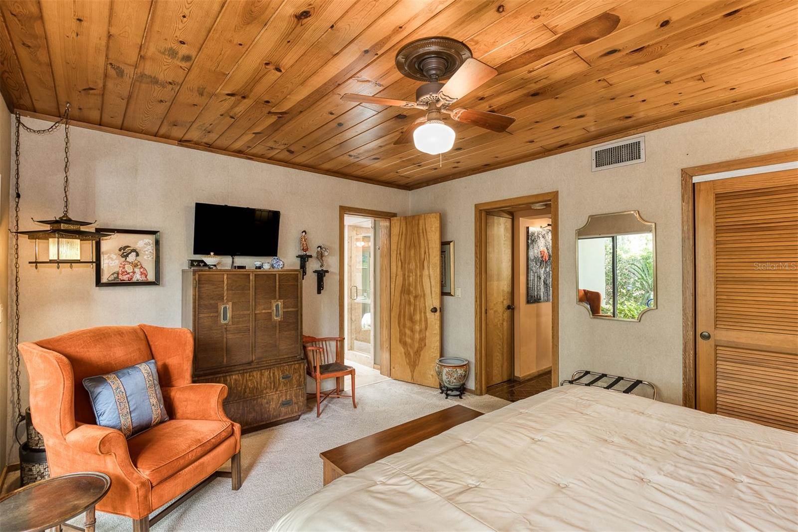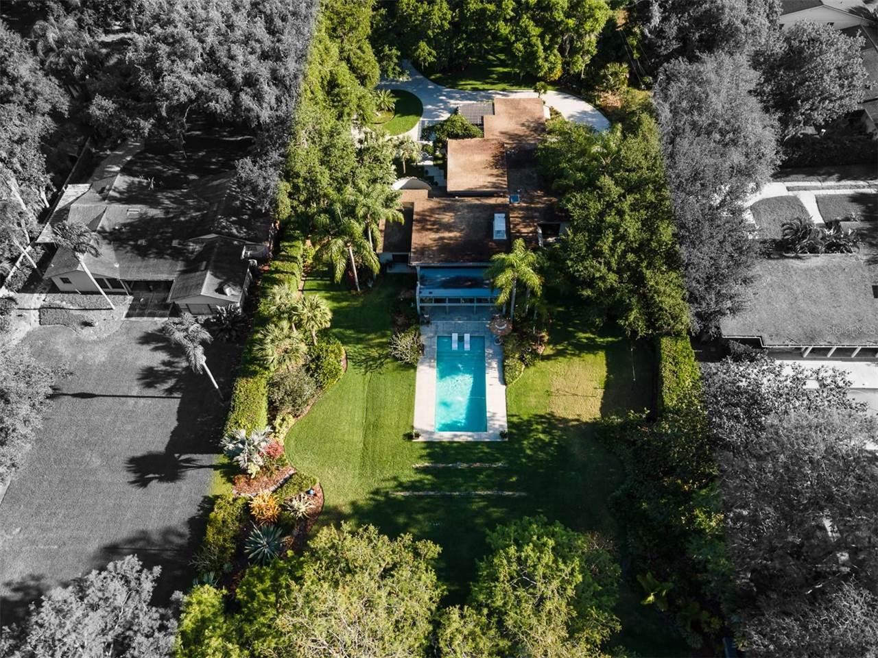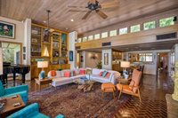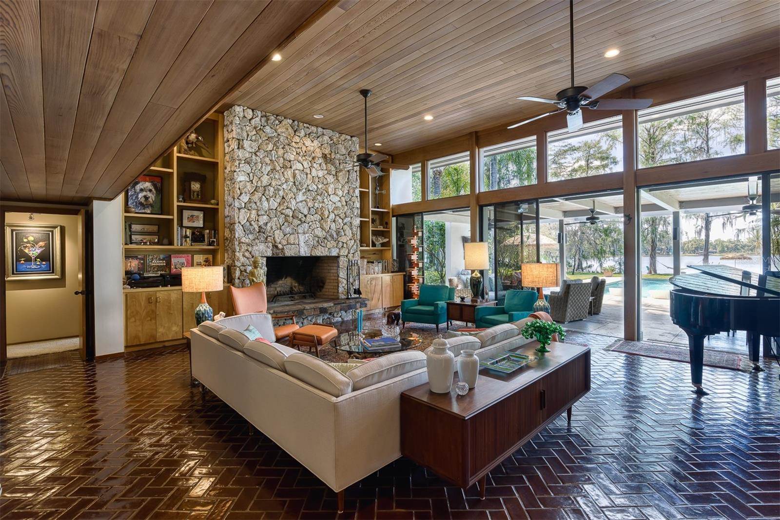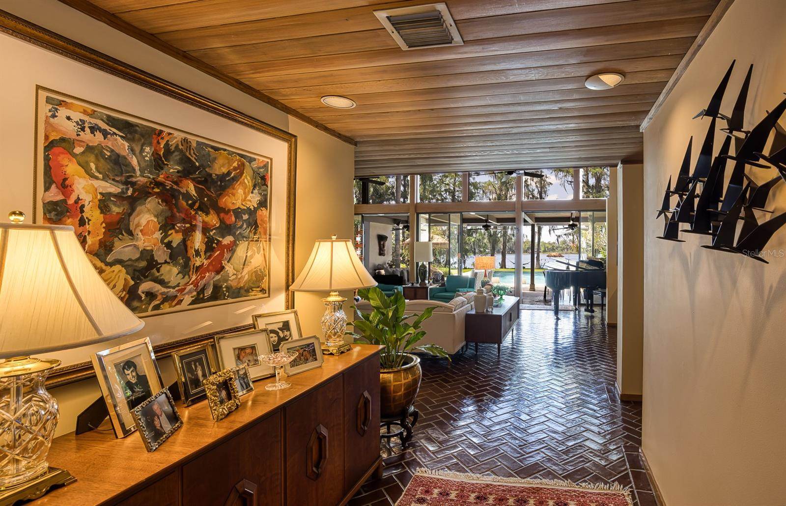 RARE OPPORTUNITY This is the first time in 25 years that this estate is available! The home and grounds have been completely reimagined from what it was 25 years ago. The home is one of only 7 homes designed in this style by local Orlando architect, Donovan Dean!Inspired by the Frank Lloyd Wright-Style of architecture and it lives up to it beautifully. Architecture and Lifestyle abound on this incredible lake front property that is meticulously landscaped from the entrance of the home down to the lake...including its own white sand beach escape. Landscape lighting covers the almost 2 acres and lake fed irrigation also runs the entire property. The gardens provide a magnificient variety of flora and fauna all year long. The custom lanai was designed to stay true to the original architecture and it is 28'x 15' Perfect for enjoying more of the outdoor space. Inside the home you will find the theme of Wood, Glass and Stone. The foyer is spacious and leads right into a wonderful transition area with a large dry bar and tons of under counter cabinet space. The rear of the living room is all glass to enjoy the views overlooking the pool, down to the beach and the lake. The wood burning fireplace is a work of art that soars to the height of the ceiling that is at almost 13 feet! In the Dining Room the ceiling height is compressed to make it more of an intimate setting. You will find 2 custom built-in Butler's pantries and directly across will be another custom built-in buffet with incredible storage. Storage has been so very well thought out and makes this home an incredible place for entertaining. The main bathroom is more like stepping into a spa with natural Red Cedar, Custom Cabinetry, Graff Fixtures and Travertine. However, the real stunner is the size of the walk-in shower and how it opens to a private outdoor garden. As a plus, you will also find an attached room off of the 2 car, oversized, garage. This room is perfect as a workshop, art space, or extra storage. Outside of the garage is very well thought out service yard. All bathrooms have been renovated, The largest A/C & Natural Gas Furnace were replaced in 2024. The Tankless Natural Gas Water Heater was also replaced in 2024. This Home has been well cared for inside and out. LOCATION LOCATION LOCATION!130 Feet of Lake FrontagePrivate 60+ Acre Spring fed Ski Lake with slalom course, Rear South Facing to enjoy the 16'x 34' Saltwater Pool with Sun Shelf, Private White Sand Beach and Lake Views. Approximately 3 miles due South of Downtown Orlando and roughly 3 miles from the brand new Epic Universe Theme Park...one of the closest Lake Front Homes to Epic Universe. Close to everything and yet far enough away to feel secluded and remote. Rare Opportunities Don't Last Long.